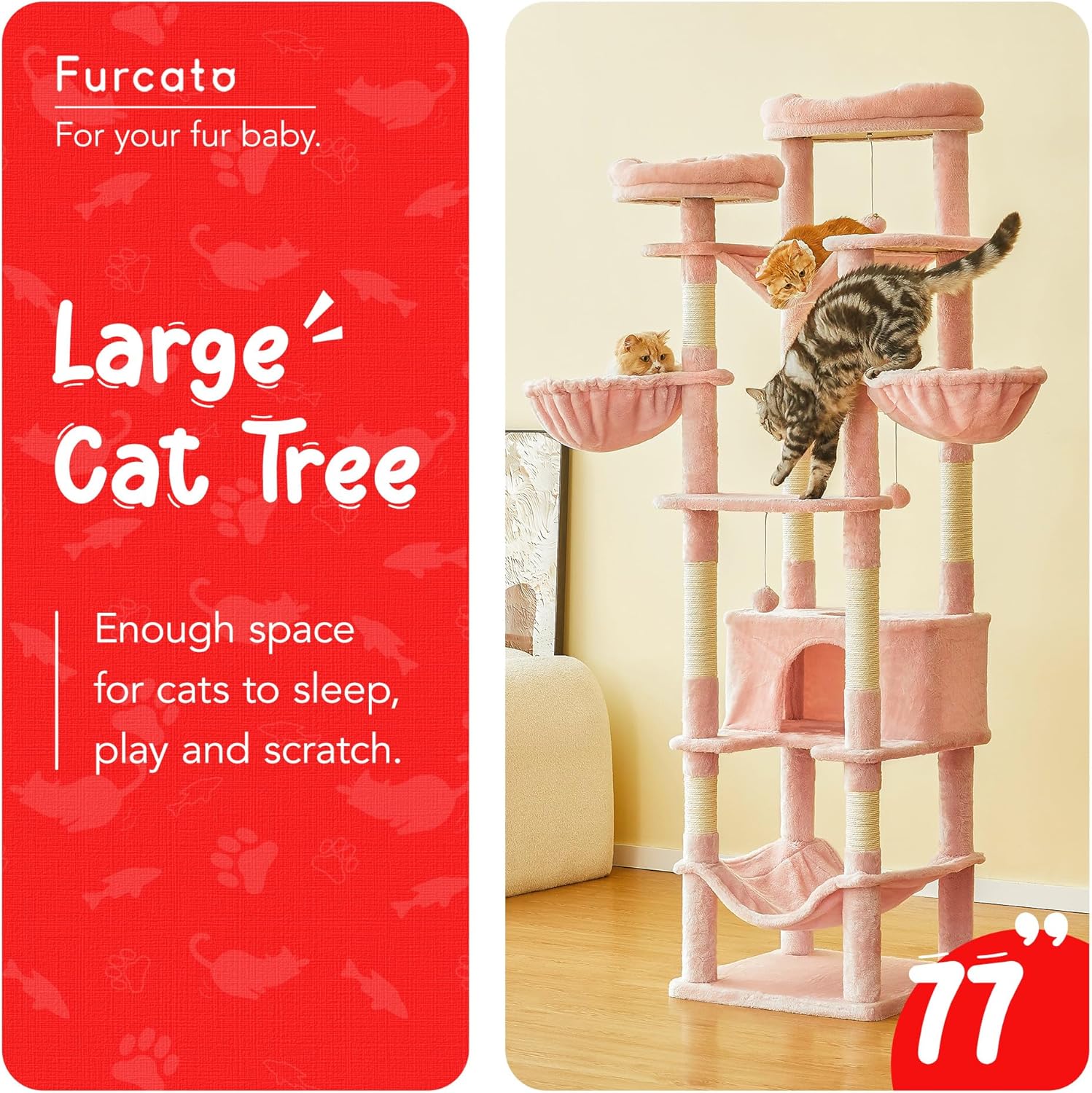 - Reach New Heights: Furcato Extra Large Cat Tree, towering at an impressive 77 inches. Designed for larger and more energetic indoor cats to explore, conquer, and relax