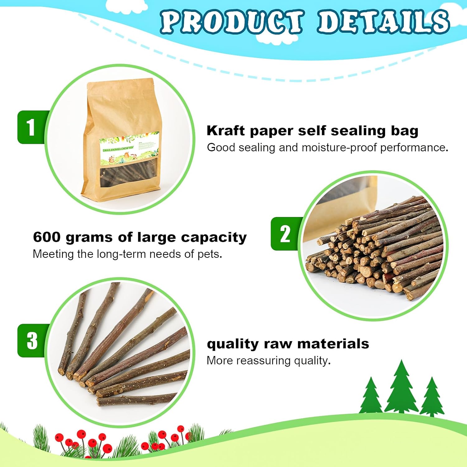- Sealed Package:Each package is 600g/1.3lb ,4.92 inch long each stick.Guinea pig toys are packed in Kraft paper to ensure that they are dry and can be stored longer.