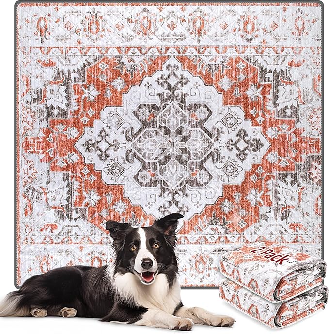 LOOBANI Reusable Pee Pads for Dogs, 2 Pack Super Absorbent Washable Puppy Pads, Waterproof Non-Slip Whelping for Floor Playpen Crate Couch - 36x41 (Red-Orange)