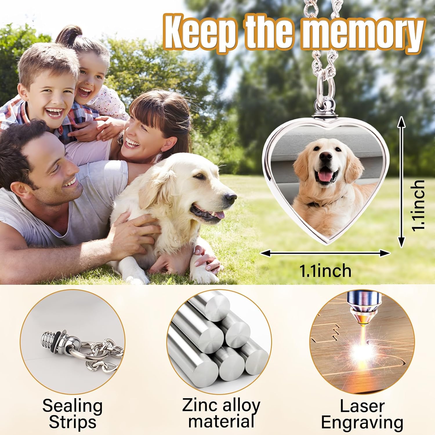 Custom Dog Urn Necklaces for Ashes - Personalized Pet Cremation Jewelry for Ashes,Double-Sided Custom with Text Picture Memorial Gift for Pet Dogs Cats Ashes Necklace (Heart-1)