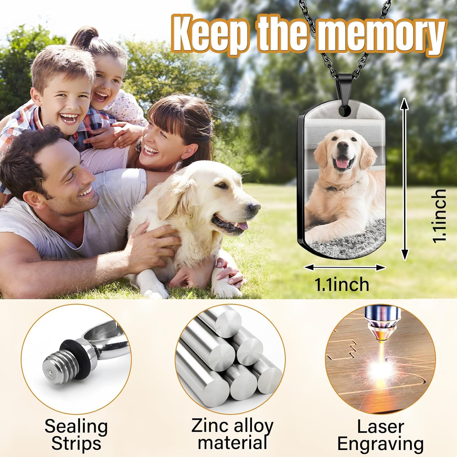 - Jewelry for Ashes of Loved Ones:Laser engraving and thermal transfer technology are used to print color photos. The surface is coated with a scratch-resistant resin to ensure that the pictures will not fall off or get scratched, so that your pets, loved ones and family members can always be with you or your family
