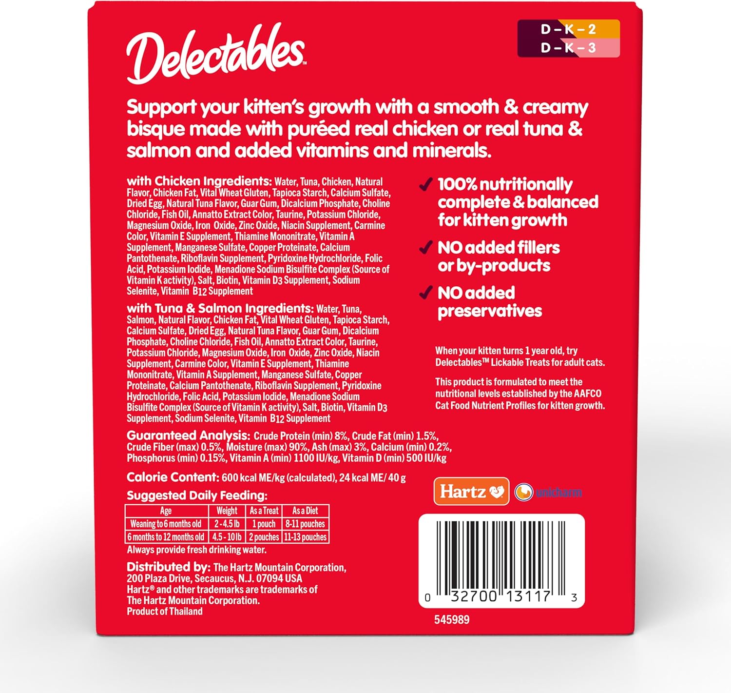 Hartz Delectables Bisque for Kittens, Complete & Balanced Variety Pack Cat Wet Lickable Treats, 12 Count