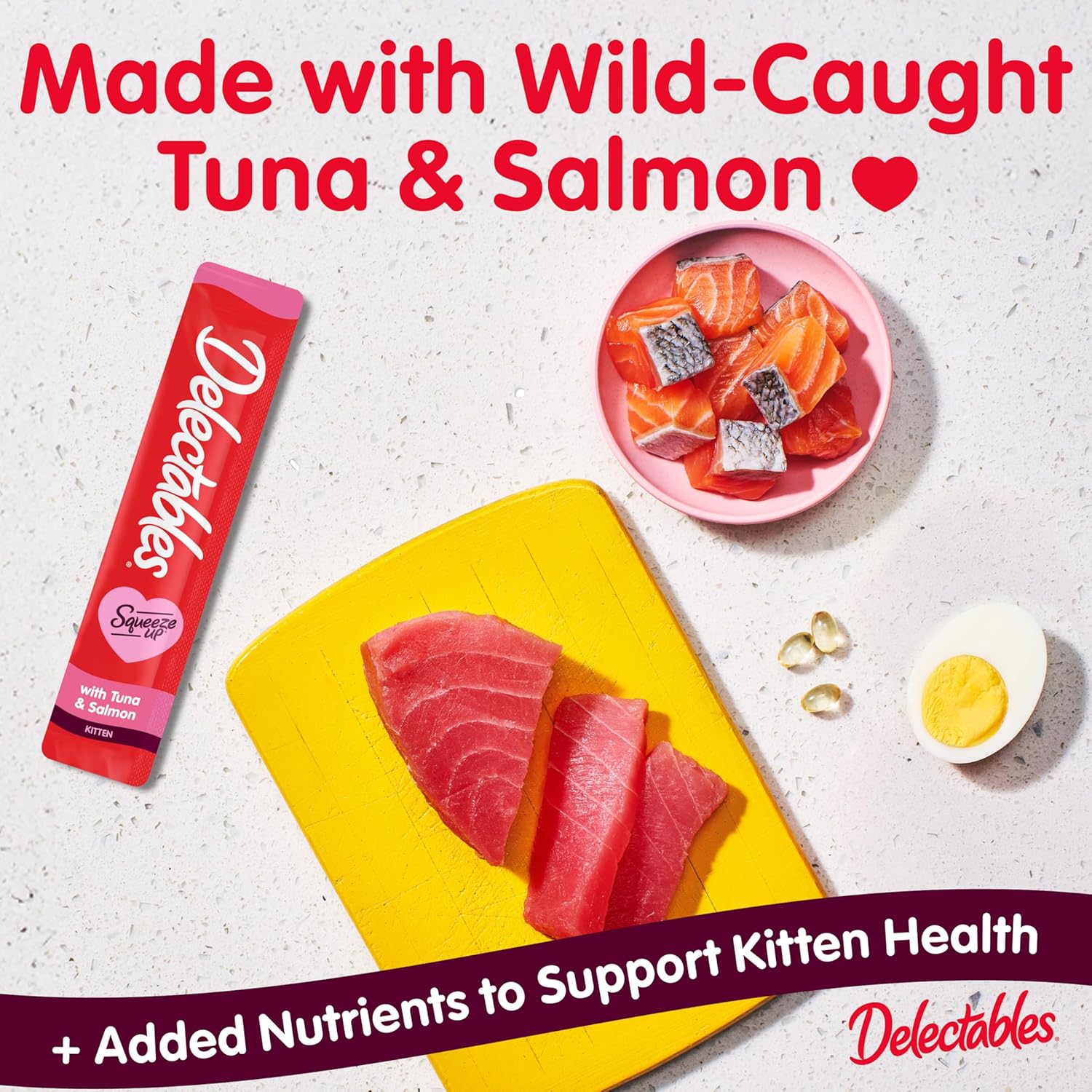 Delectables Squeeze Up Kitten Creamy Squeezable Puree, Lickable Wet Cat Treats, Grain Free, No Added Fillers, No By-Products, No Added Preservatives, 0.5 Ounces Tube Tuna & Salmon, 32 Tubes Total