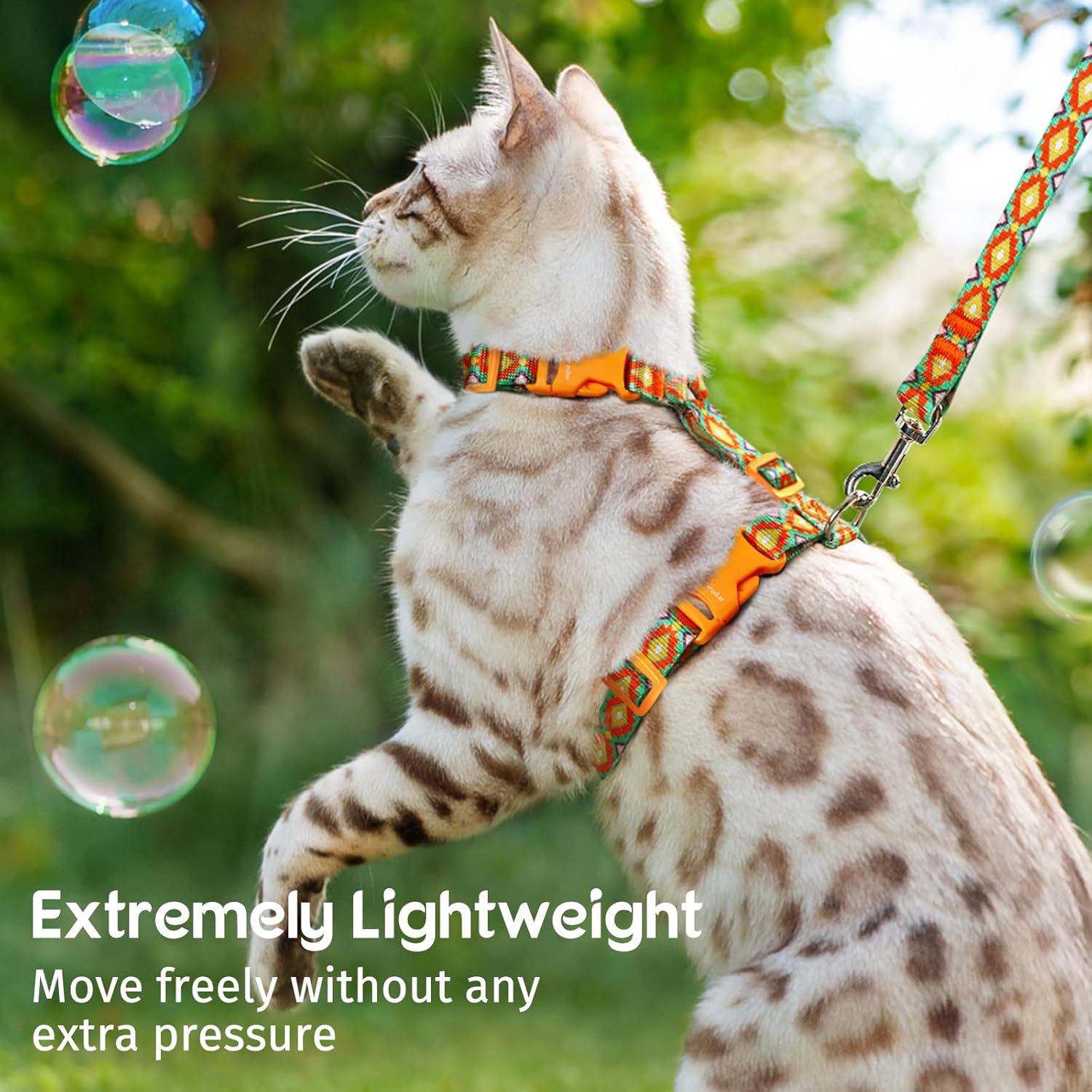 - Fully Adjustable - This cat harness has been upgraded a new back adjustment snap for strap spacing, while the neck and chest snaps for fit. Combined, they deliver a perfectly customized fit for your cat.
