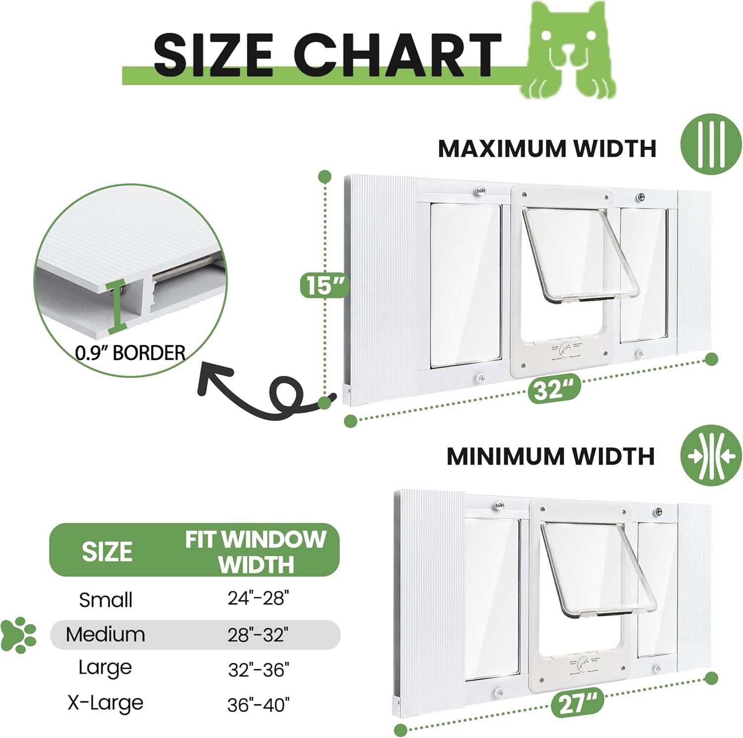 - 【PURCHASE GUIDE】Suitable for sash windows with a width of 28"-32".Flap size: 7.8"W ✖ 10.6"H. Door frame height: 15". Door frame thickness: 0.9".Before purchasing, please make sure to measure the window width according to the provided method. Otherwise, the purchased product may be too large or too small, making it unusable.