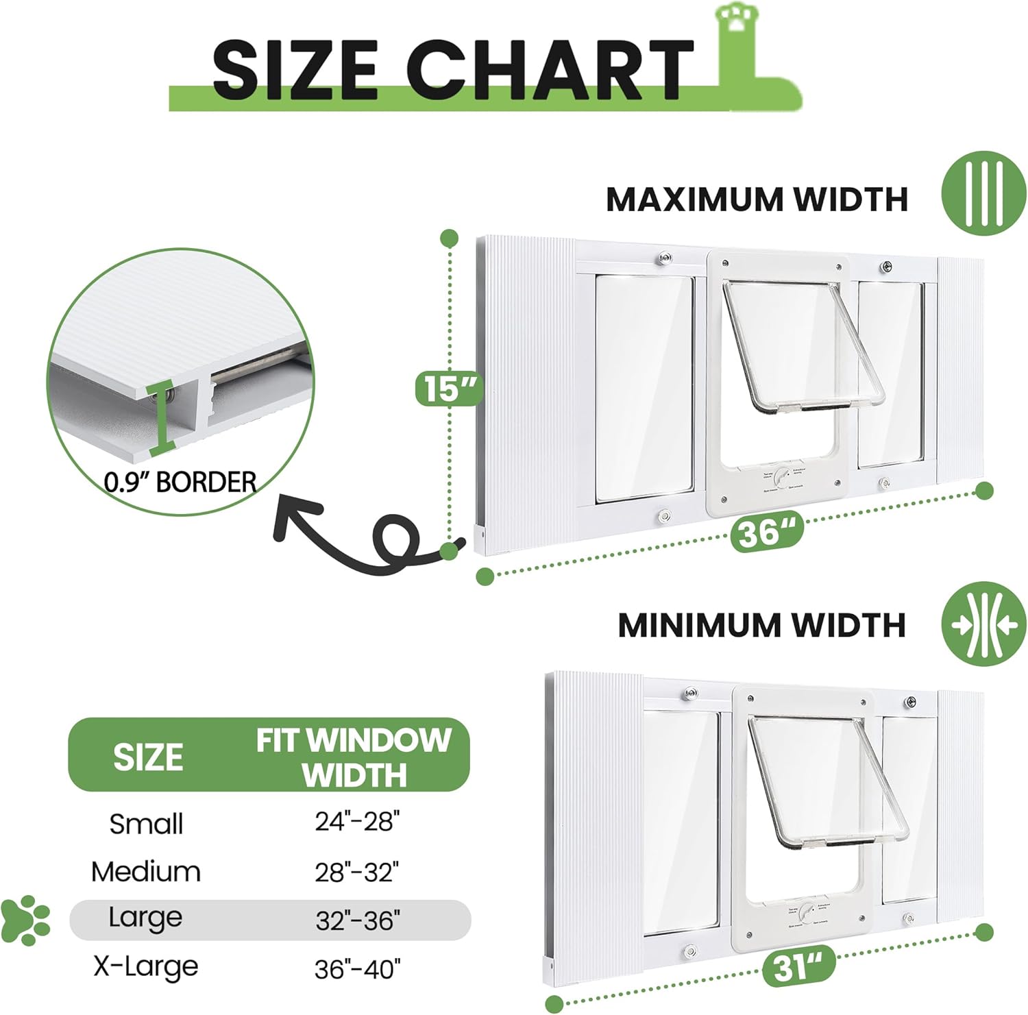 Full-Size Window Pet Door for Cat&Small Dog, Fits 32"-36" Width Window, Quick-Fit Cat Door Window Insert, 4 Locking Mechanisms, Magnetic Closure Cat Window Door,Aluminum Frame Pet Door for Window