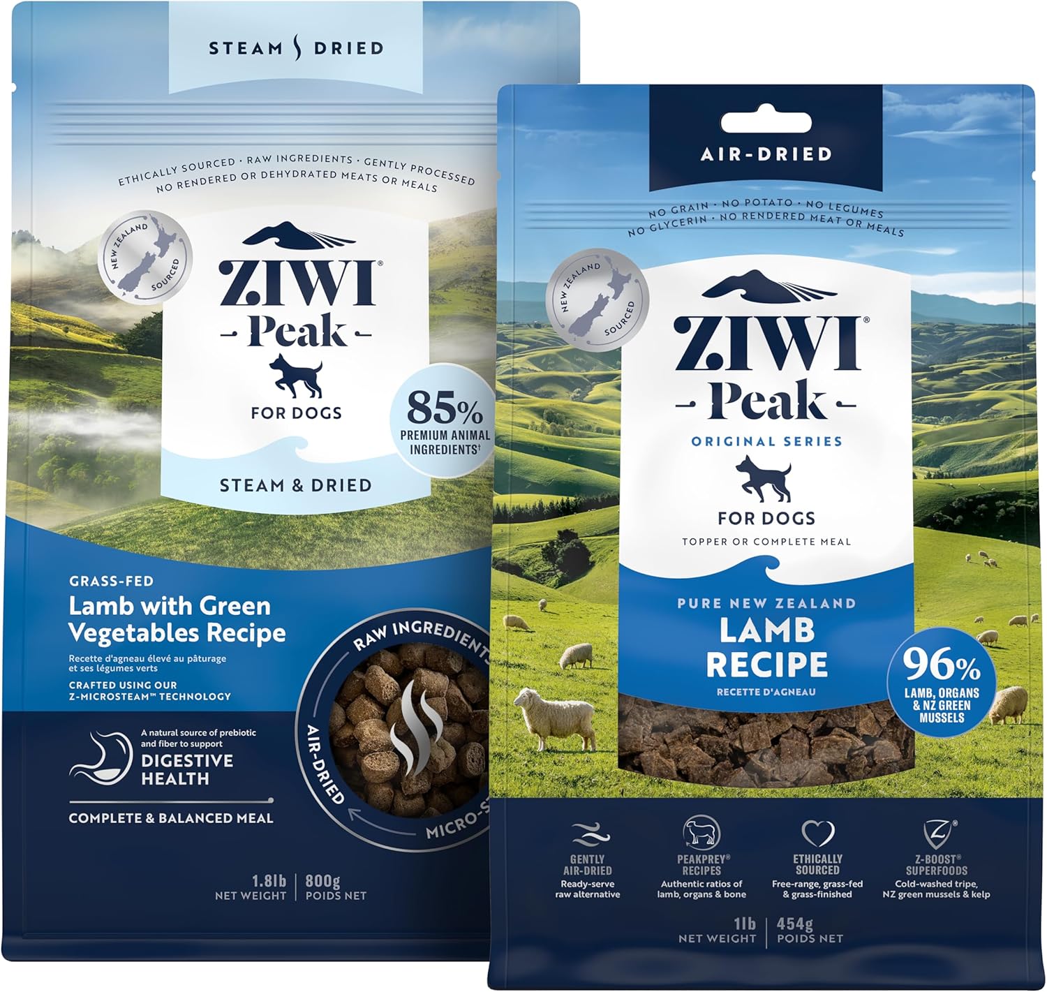 ZIWI Peak Lamb Dry Dog Food Bundle- Steam & Dried Lamb w/Vegetables (28.8oz) + Air-Dried Lamb (16oz)