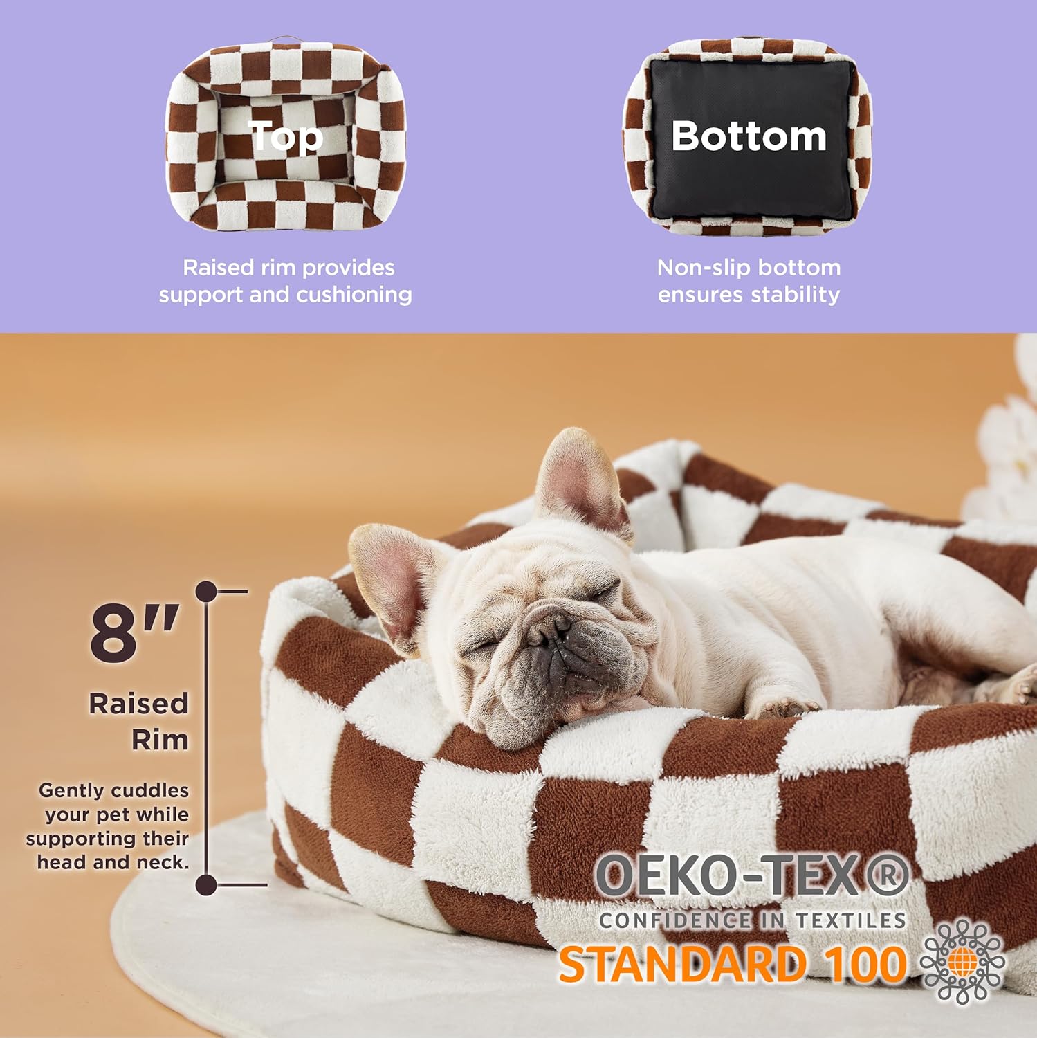 Lesure Cute Dog Bed for Medium Dogs - Washable Pet Beds,Cozy Rectangle Orthopedic Sofa with Jacquard Shaggy Plush & Anti Slip Bottom,30x24x8inches
