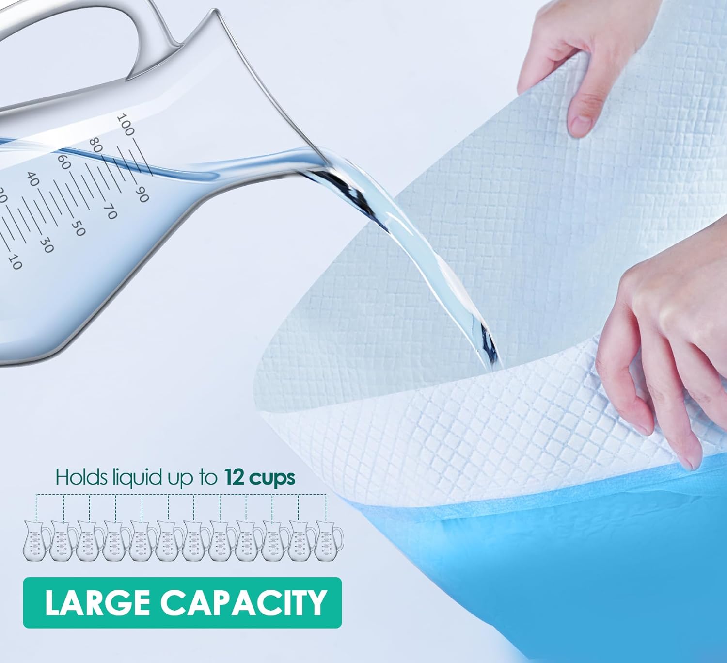 - 【Super Absorbent & 6-Layers Protection】XL dog pee pads are constructed with 6 robust layers, making them thicker, heavier, and more absorbent than most puppy pads, capable of holding up to 12 cups (100 ml/cup, 1200 ml total) of liquid, keeping your floors remain clean and dry