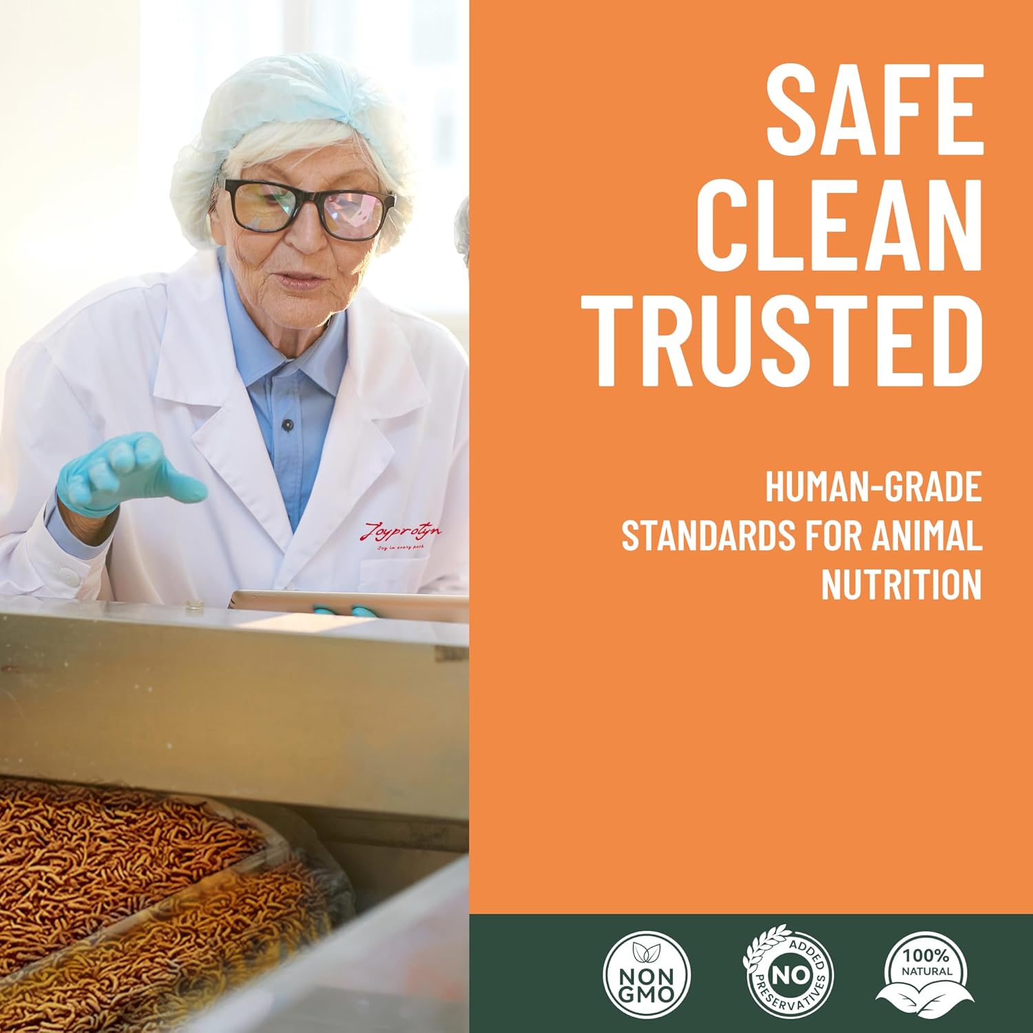 - Premium Protein Source for Healthy Growth: Joyprotyn’s BSFL feed packs 43% protein—2x the protein of typical chicken feed—to promote muscle and feather development. This nutrient boost supports vibrant plumage during molting and helps your hens produce more high-quality eggs throughout their laying cycle.