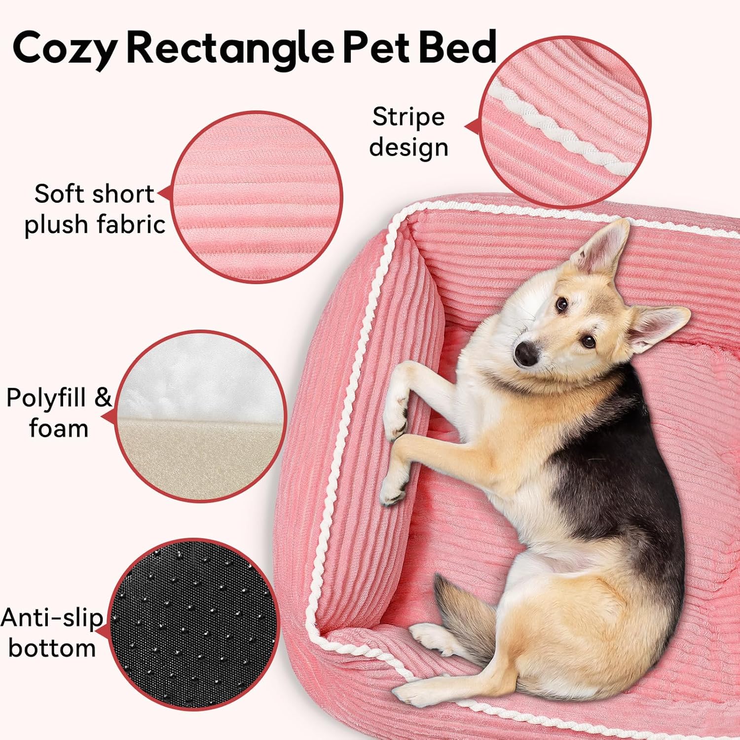 - 🐶Anti-slip Bottom: The dog/cat bed features a flat Oxford bottom with anti-slip dots, ensuring it stays in place on smooth surfaces, even when your pet is on the move