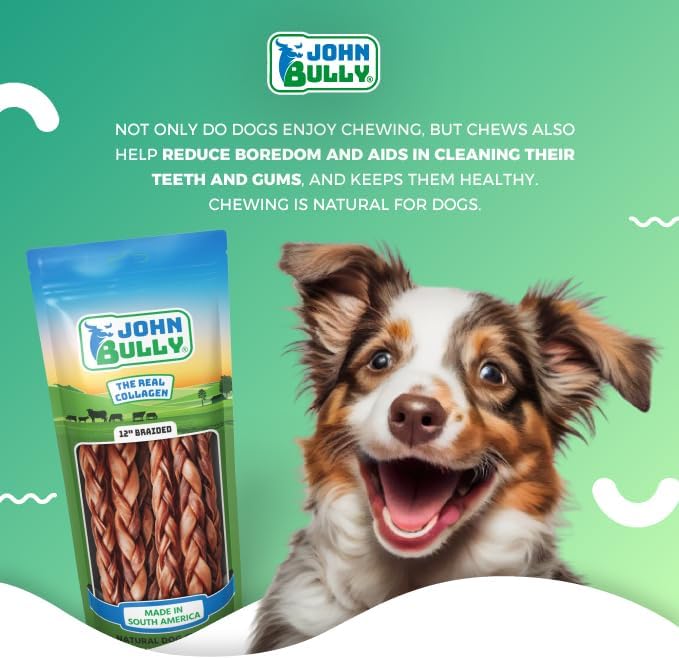 john bully Collagen Braided 12" 6PK, The Best Option for Your Dog, 100% Natural, Rich in Protein, Highly Digestible, Gluten Free,Premium Grade Quality,Odor Free The Real Collagen