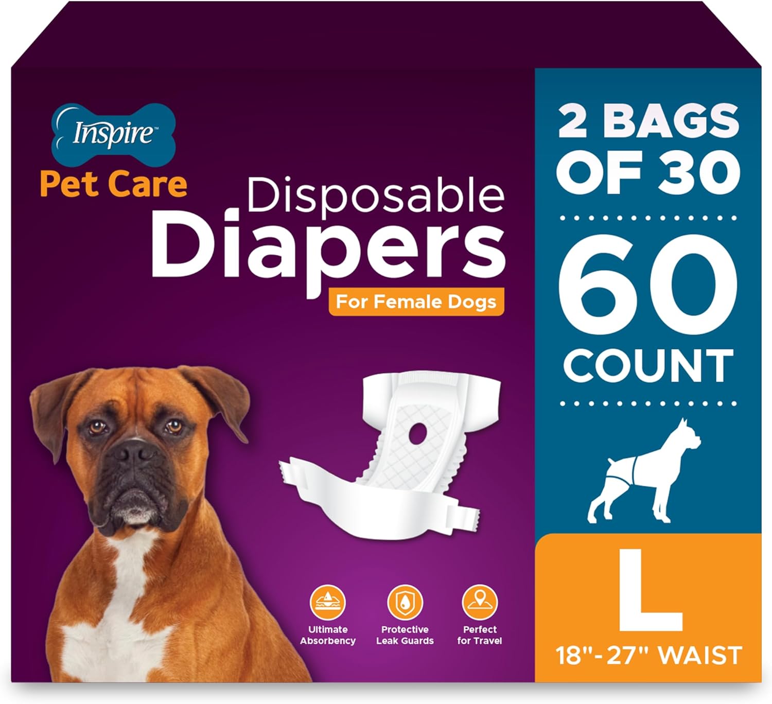 Inspire Pet Care Dog Diapers Female Dogs | Bulk Value Doggie Incontinence, Accidents, for Heat, Pee or Period and Housebreaking (Large (60 Count))