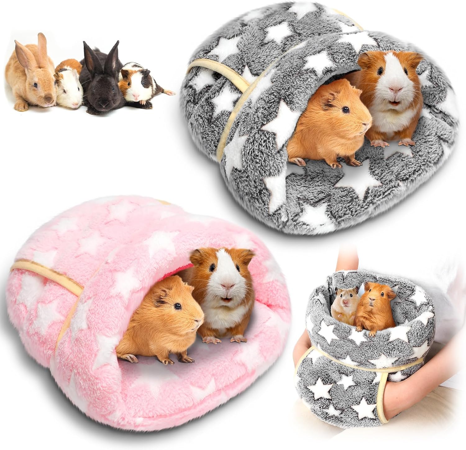 Wenqik 2 Pcs Guinea Pig Hideouts Washable Bunny Bedding Cuddle Warm Small Pet Sack Supplies Portable Pet Carrier Cage Nest Guinea Pig Accessories for Cage(Gray, Light Pink,Pentagram)