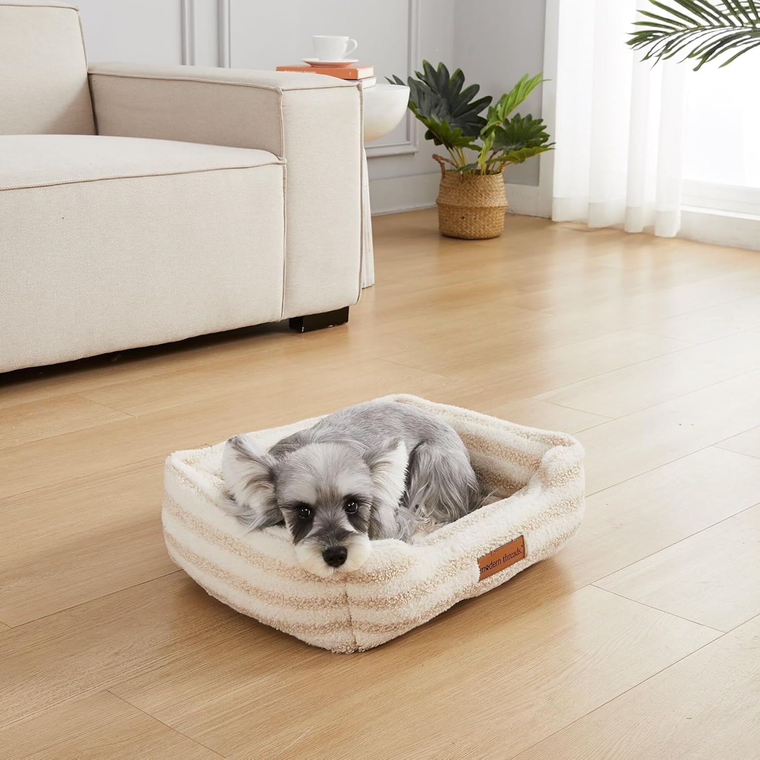 Modern Threads Plush Sherpa Pet Bed for Small and Medium Dogs Ultra Soft Cuddler with Raised Edges for Extra Comfort, Beige