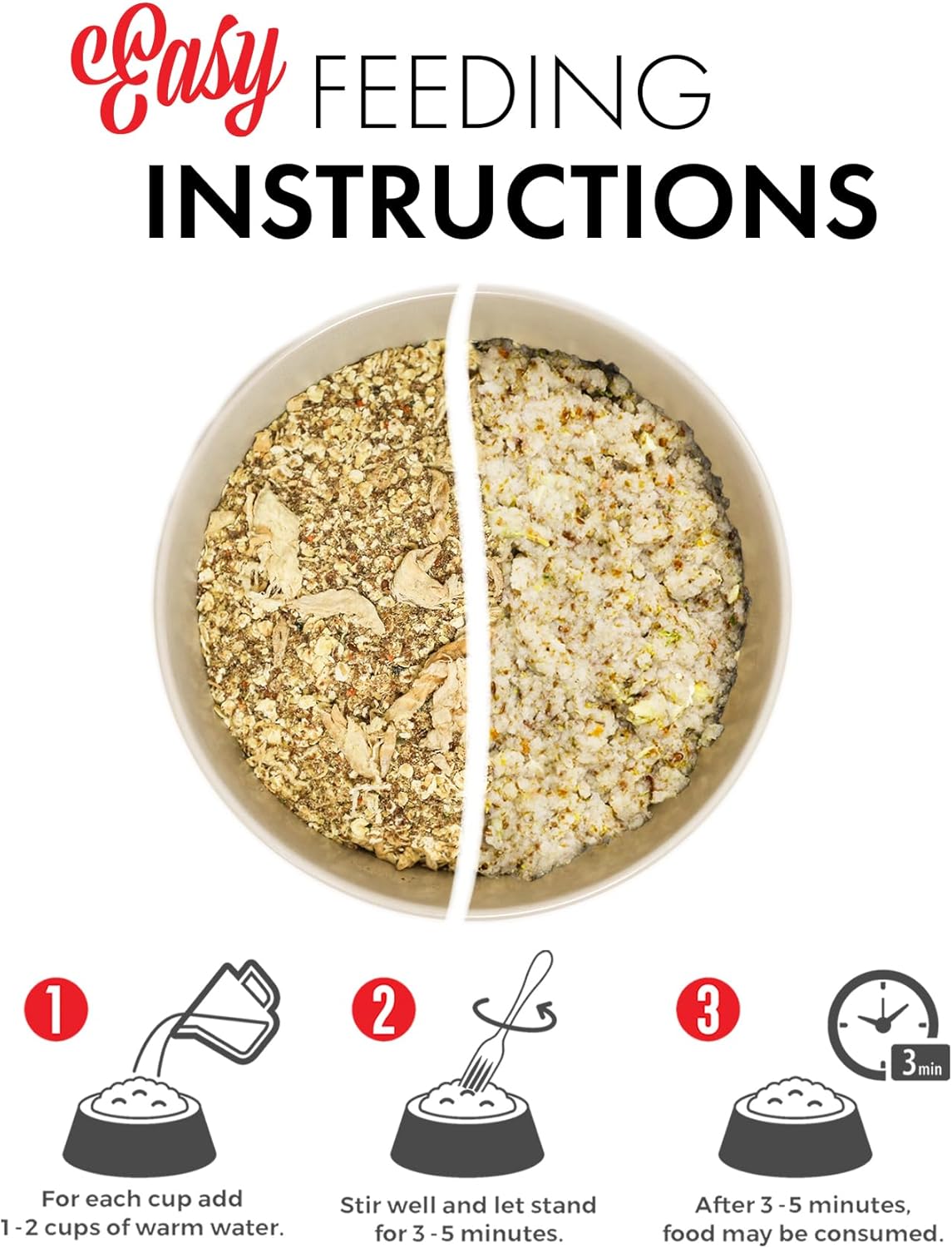 - Serve as a complete meal, tasty topper, mix-in, or with lick mats and interactive toys - just add water to create this protein-packed, wholesome recipe. Makes 5 pounds of fresh food.
