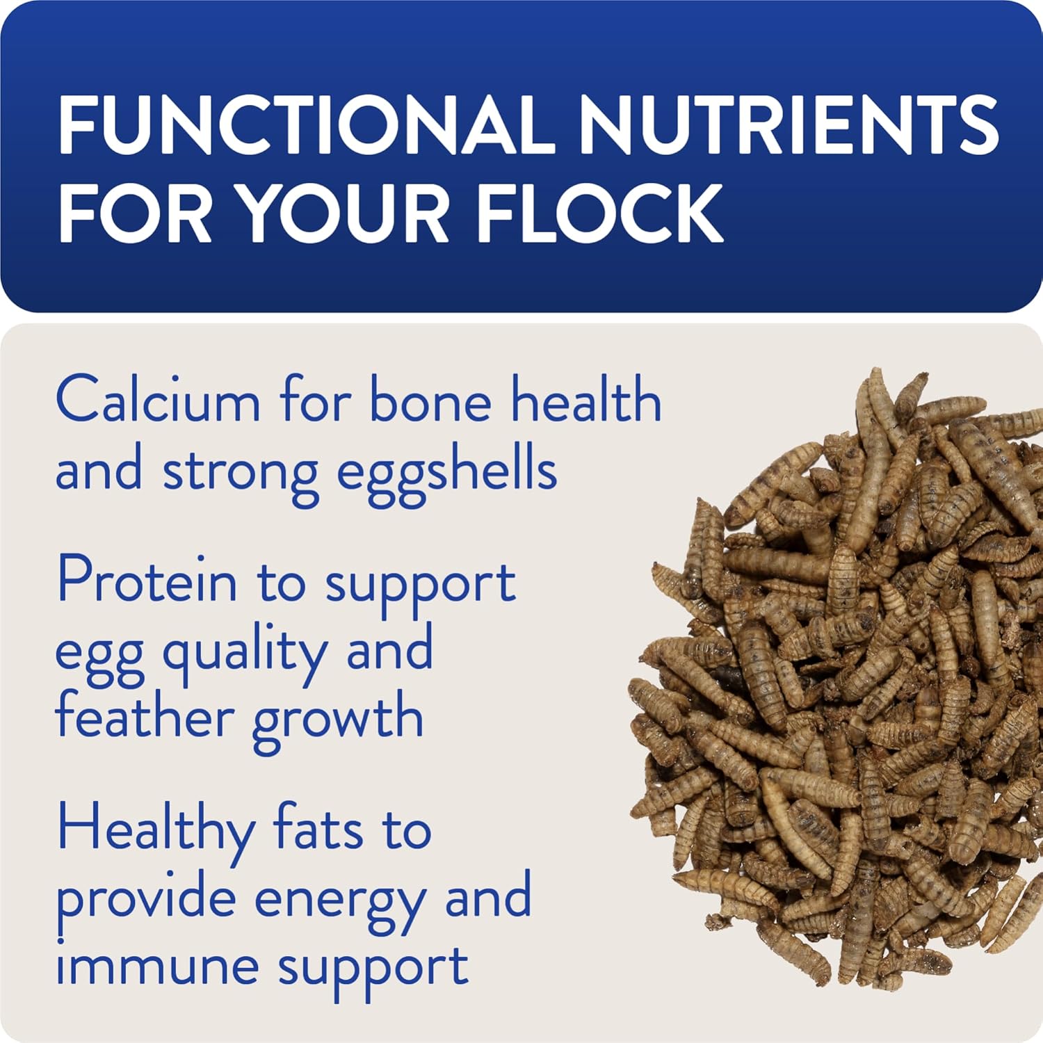 - SAFE FOR ALL POULTRY SPECIES: Feed 1/2 to 2 tablespoons per bird, 8 weeks or older as a daily treat. FREEDOM FLY can be fed by hand or scattered to encourage foraging behavior.