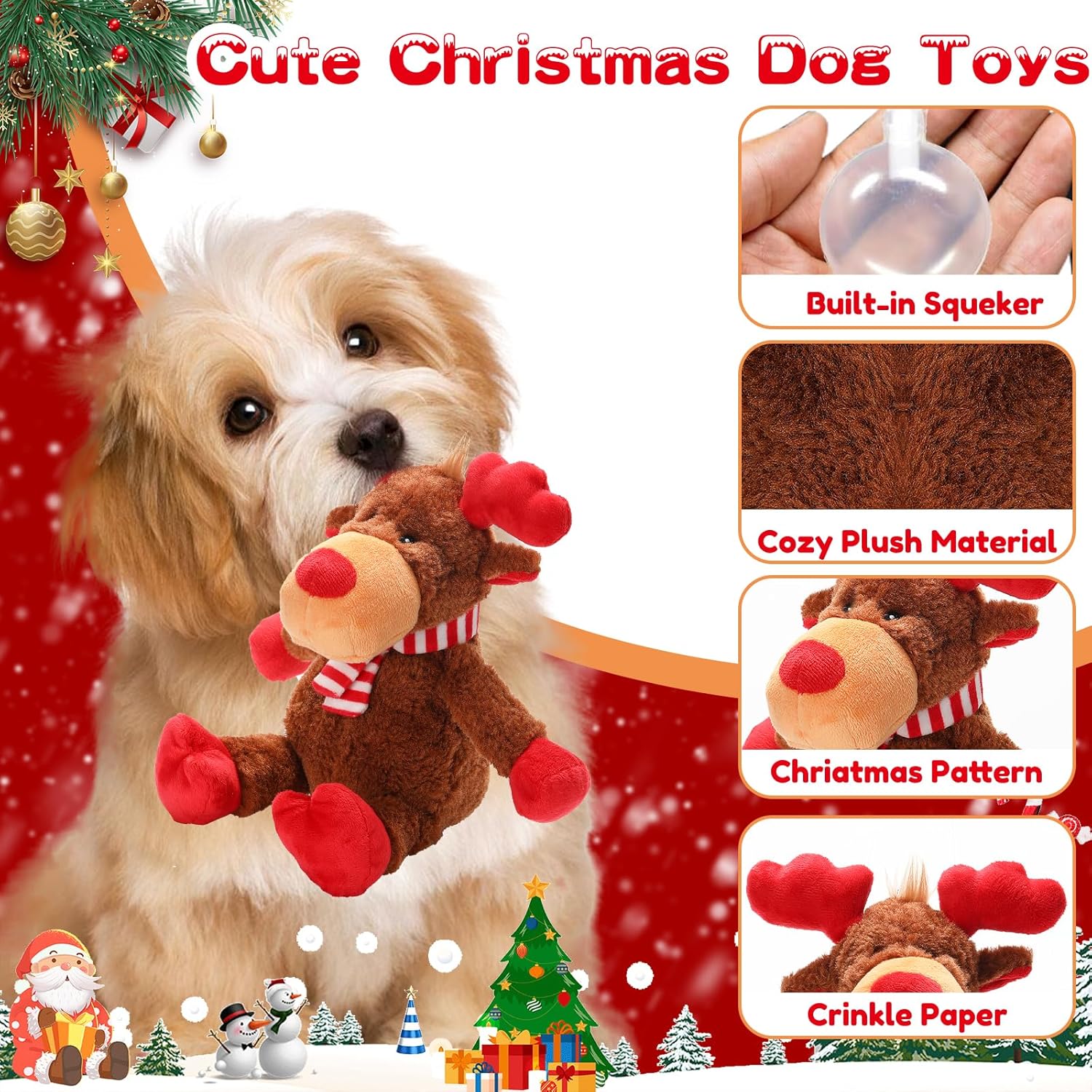 Christmas Squeaky Toys With Crinkle Paper, Plush Reindeer Interactive Stuffed Chew Toys, Gifts for Puppy, Small, Medium, Large Dogs