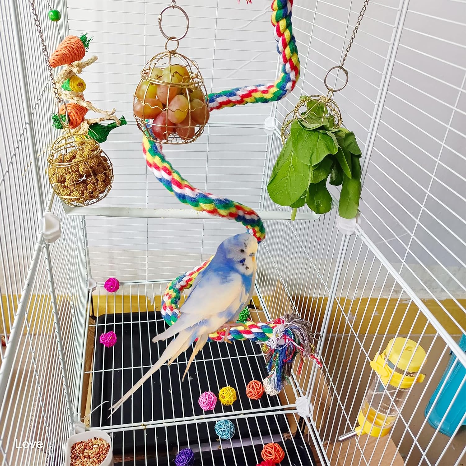 Bird Rope Perch,Birds Perch,Bird Perches for cage,Parakeet perches,Rope Perch for Conures,Parrot,Cockatiel,Lovebird,Budgerigar,Bird cage Accessories,Chew Toys