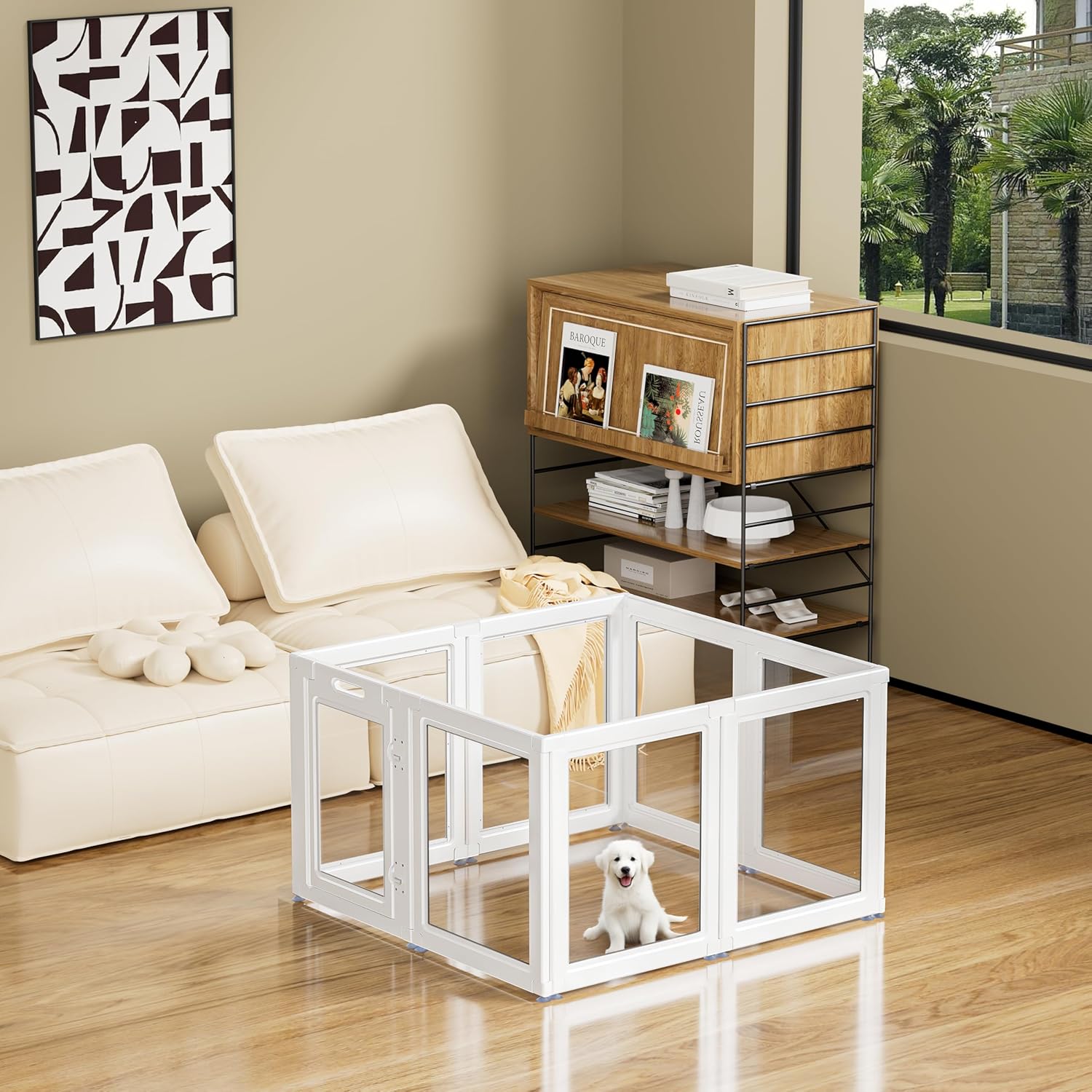 Clear Acrylic Dog Playpen Transparent Dog Playpen Indoor, Easy Assemble Clear Pet Pen for Puppy Bunny Cat Pig, Sturdy & Easy Cleaning Plastic Dog Puppy Fence (23.6" H, 8PCS)