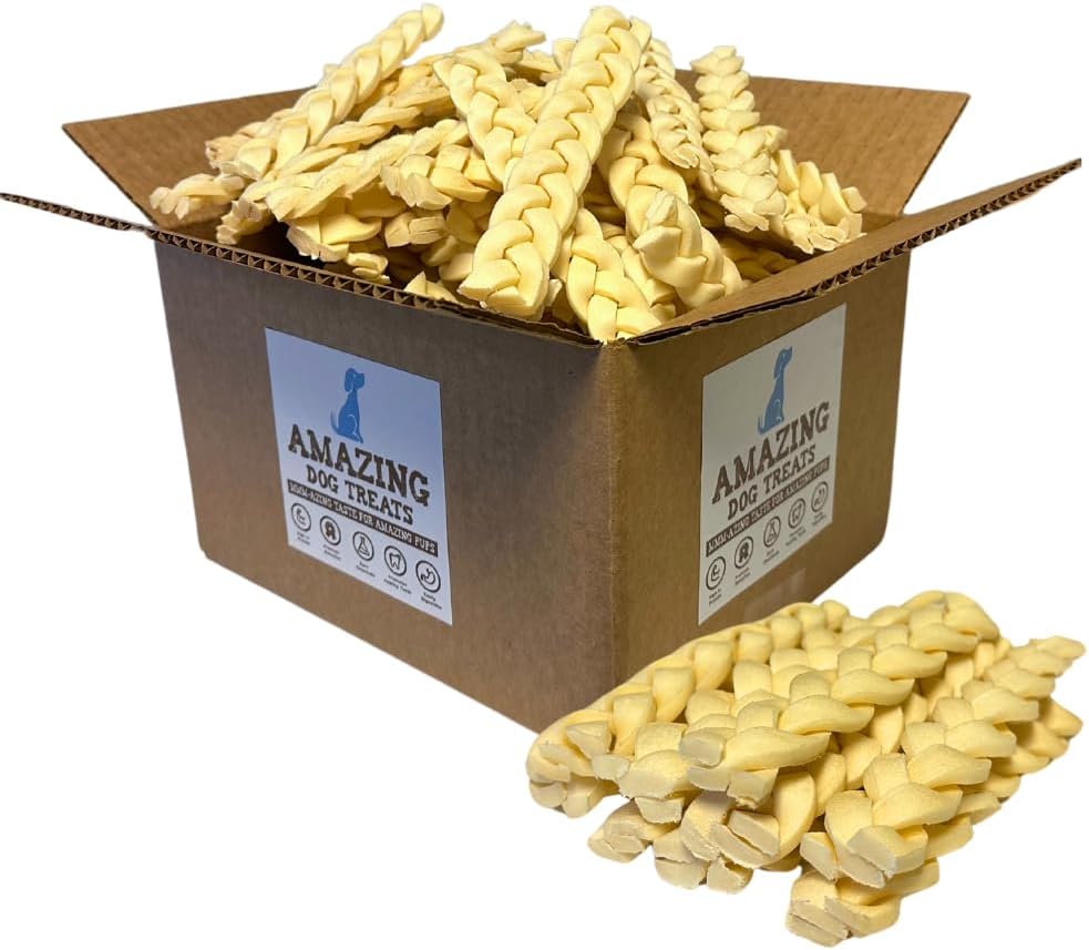 Amazing Dog Treats - Beef Cheek Braids Dog Chew (6 Inch - 50 Count) - NO Odor - Rawhide Alternative - Beef Cheek Slice Chip Sticks - No Dyes, Chemicals, or Preservatives