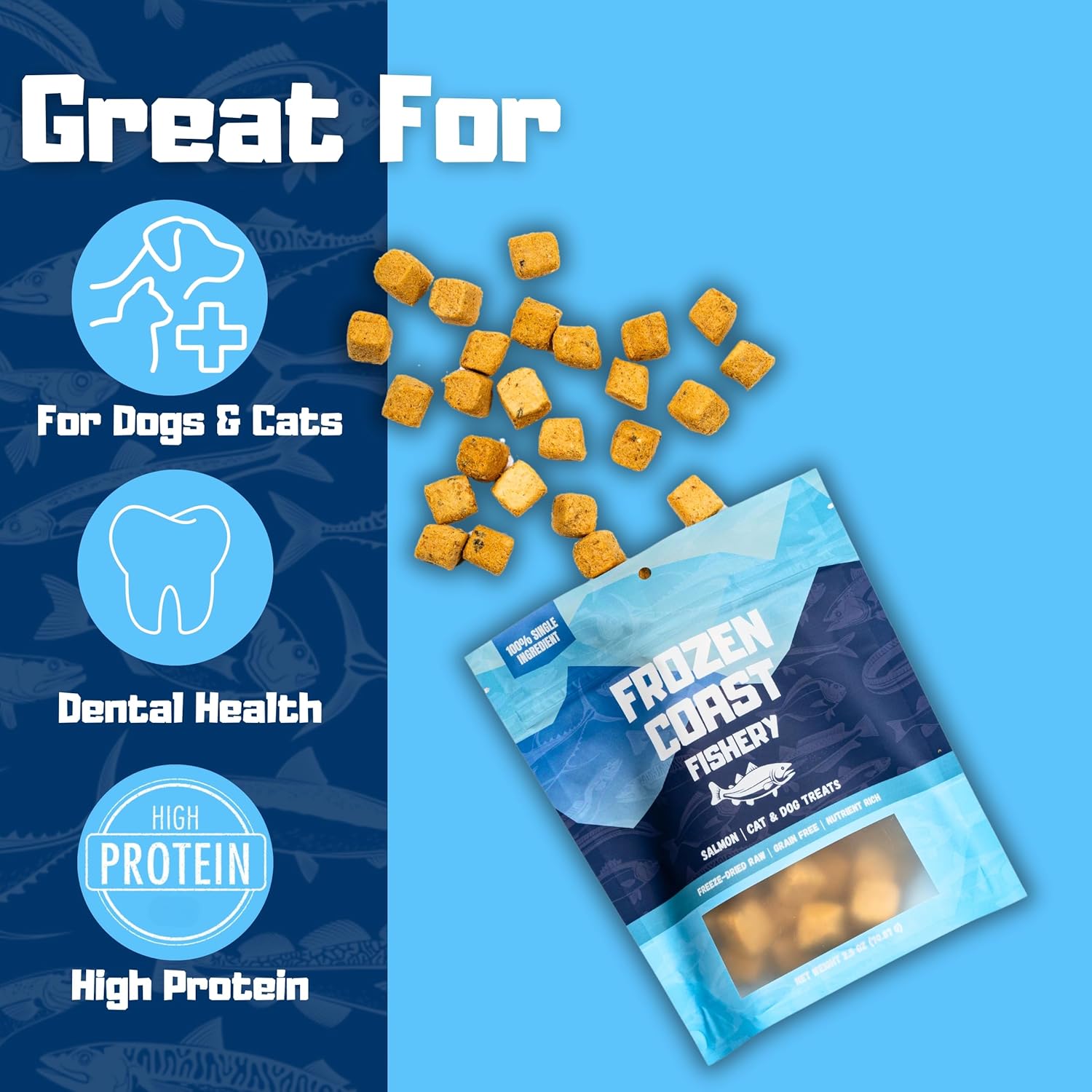 Frozen Coast Freeze-Dried Wild-Caught Salmon Cat & Dog Treats-High-Protein, Omega-3, Grain-Free (2.5 oz-Bag)