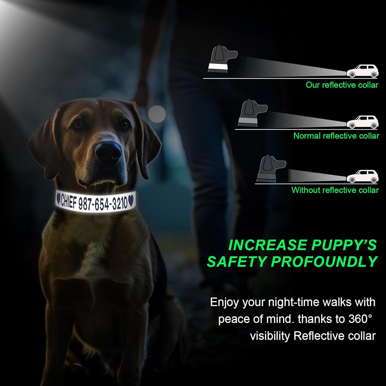 Personalized Reflective Dog Collar Embroidered with Pet Name and Phone Number - Metal Buckle Adjustable Custom Dog Collars in Pink, Blue, Black for Large Dogs, Boys and Girls Puppy