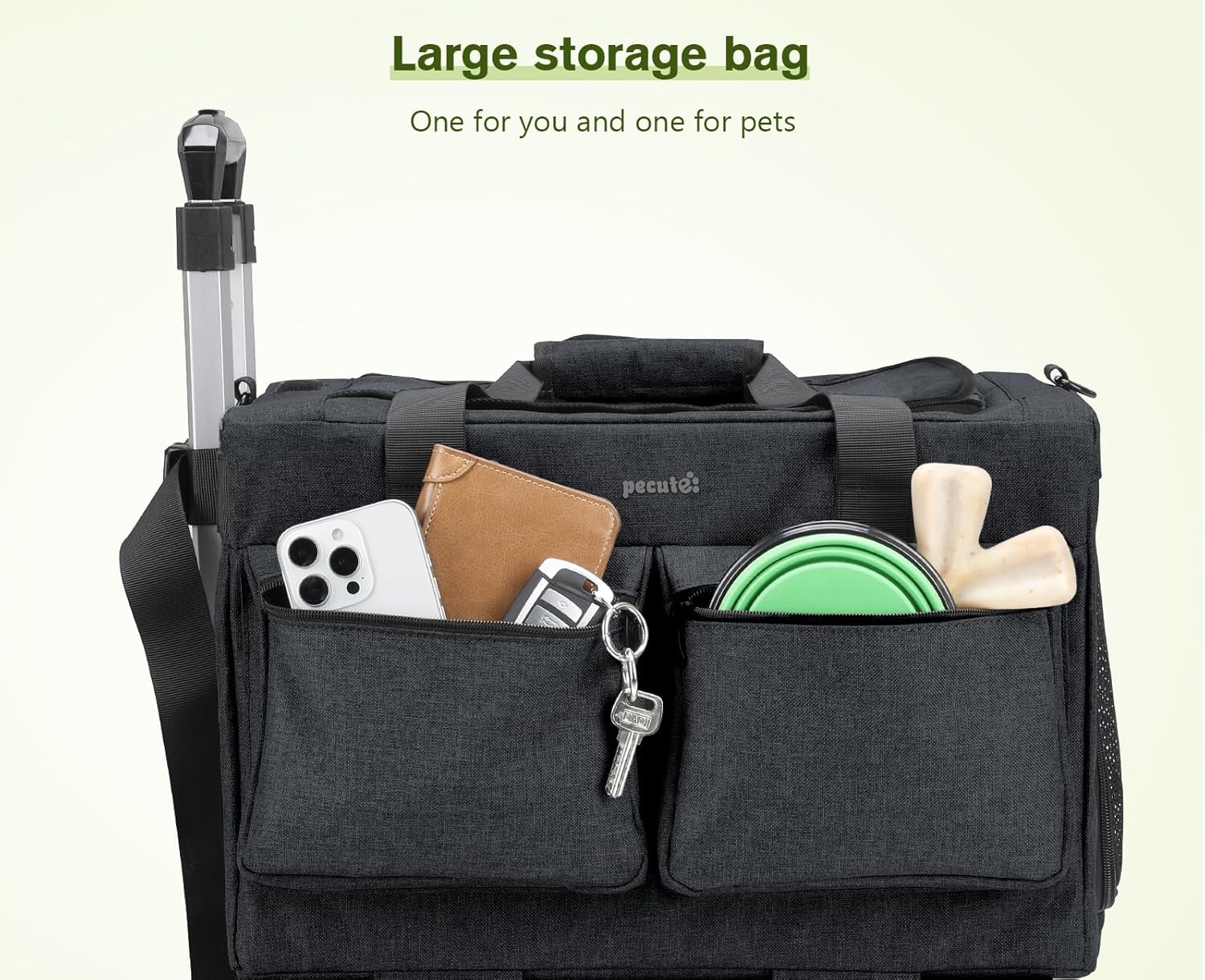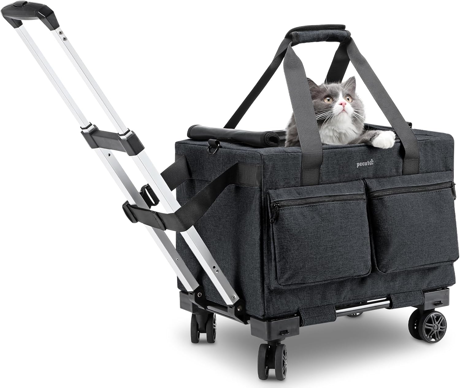 Pecute Cat Carrier with Wheels,Steel Wire Frame Cat Carrier, Stable Pet Trolley Bag for Cats, Pet Handbag and Stroller, Portable Cat Carrier Bag for Car Travel Bus Subway, Dark Grey