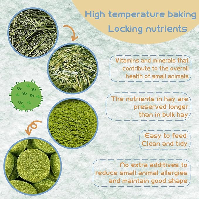 - Nutritious Teething Treat: These compressed timothy hay snacks provide a natural and wholesome option for your furry friend's teething needs.