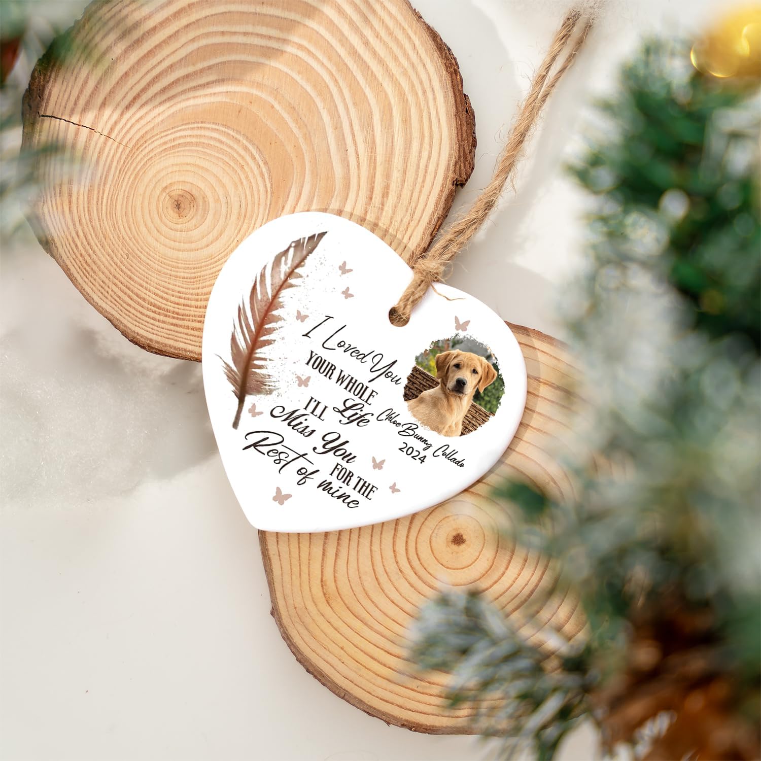 I Loved You Your Whole Life I’ll Miss You for The Rest of Mine Pet Memorial Heart Ceramic Ornament, Upload Photo Personalized Pet Memorial Ceramic Ornament for Dog Lovers, for Cat Lovers