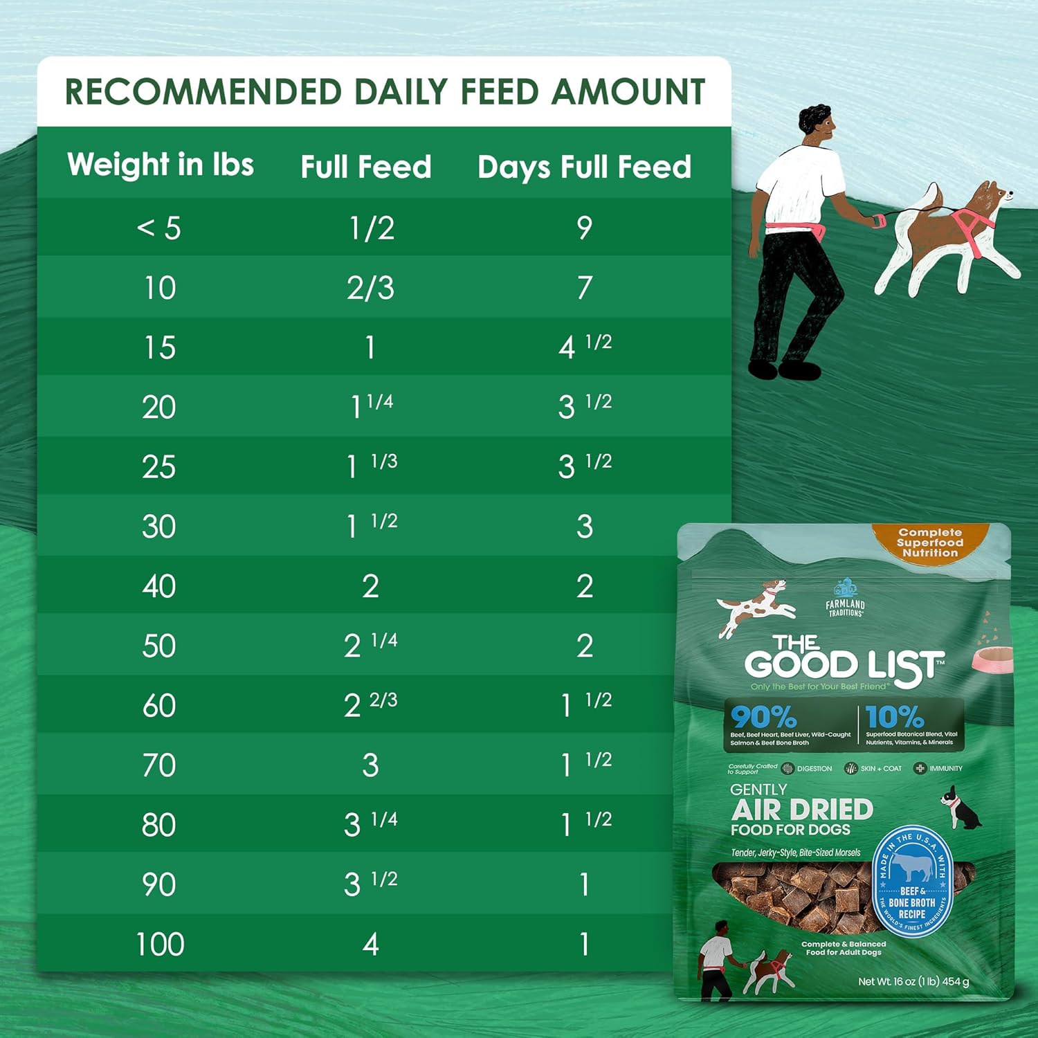 Farmland Traditions The Good List Air-Dried Dog Food, Premium Beef & Bone Broth for Dogs, Protein Rich & Grain-Free Nutrition, 1 Pound Bag