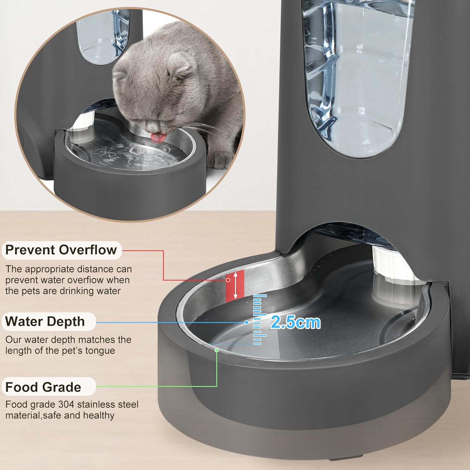 - Automatic Water - They use gravity to replenish water automatically to help the owners free their hands. Water volume can be monitored through visual windows.You can rest assured to go to vacation, work, party, don't worry that pets will be hungry