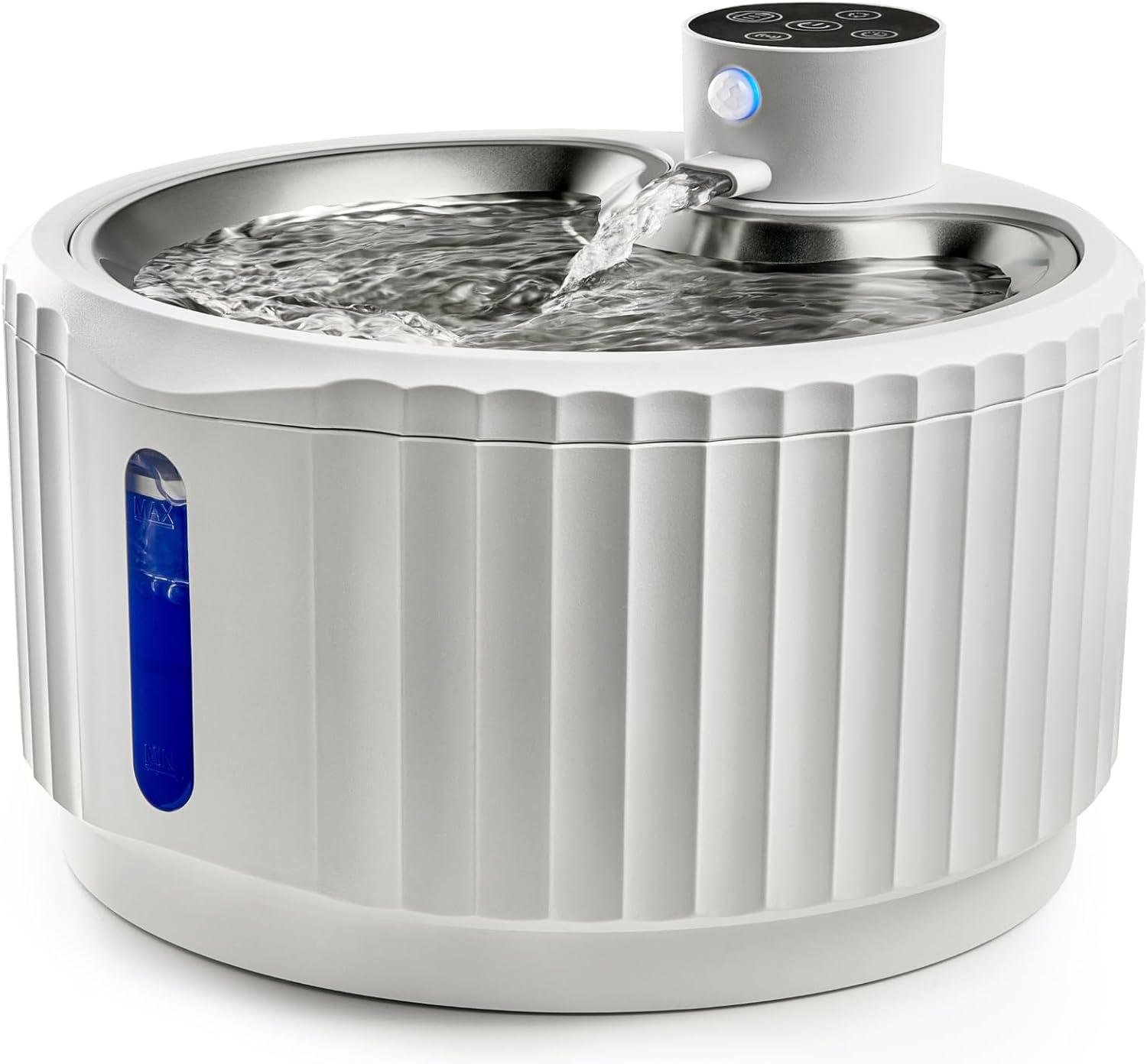 - Stainless Steel Tray: Ensures durability and easy cleaning, the rechargeable cat water fountain is easy to assemble and disassemble for hassle-free cleaning