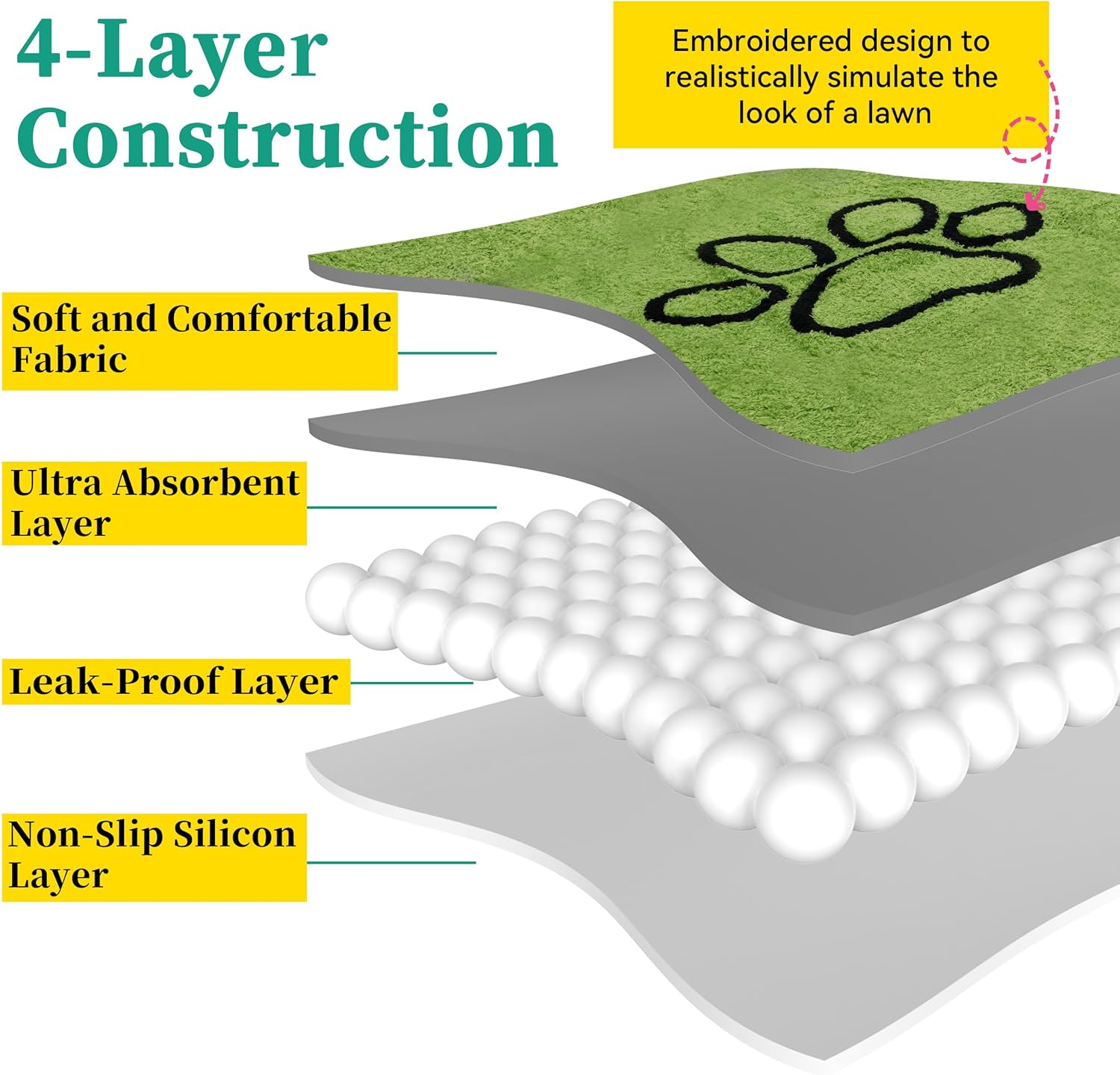- Appearance and Design: The reusable pee pads for dogs boast a lifelike and refreshing simulation of grass design, adorned with cute dog paw embroidered pattern. Available in a range of sizes tailored to fit for pets of diverse sizes and habits, washable pee pads harmoniously blend functionality with fashions