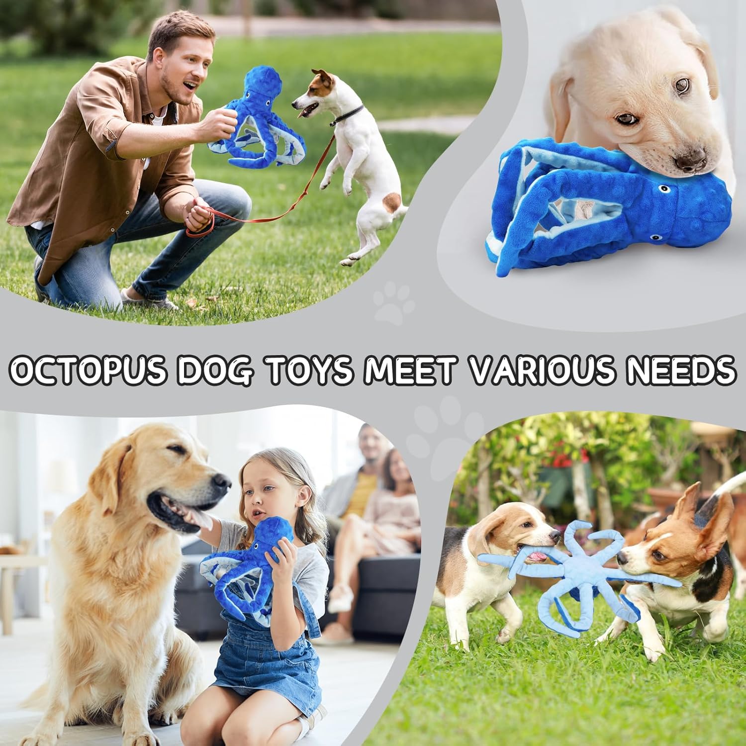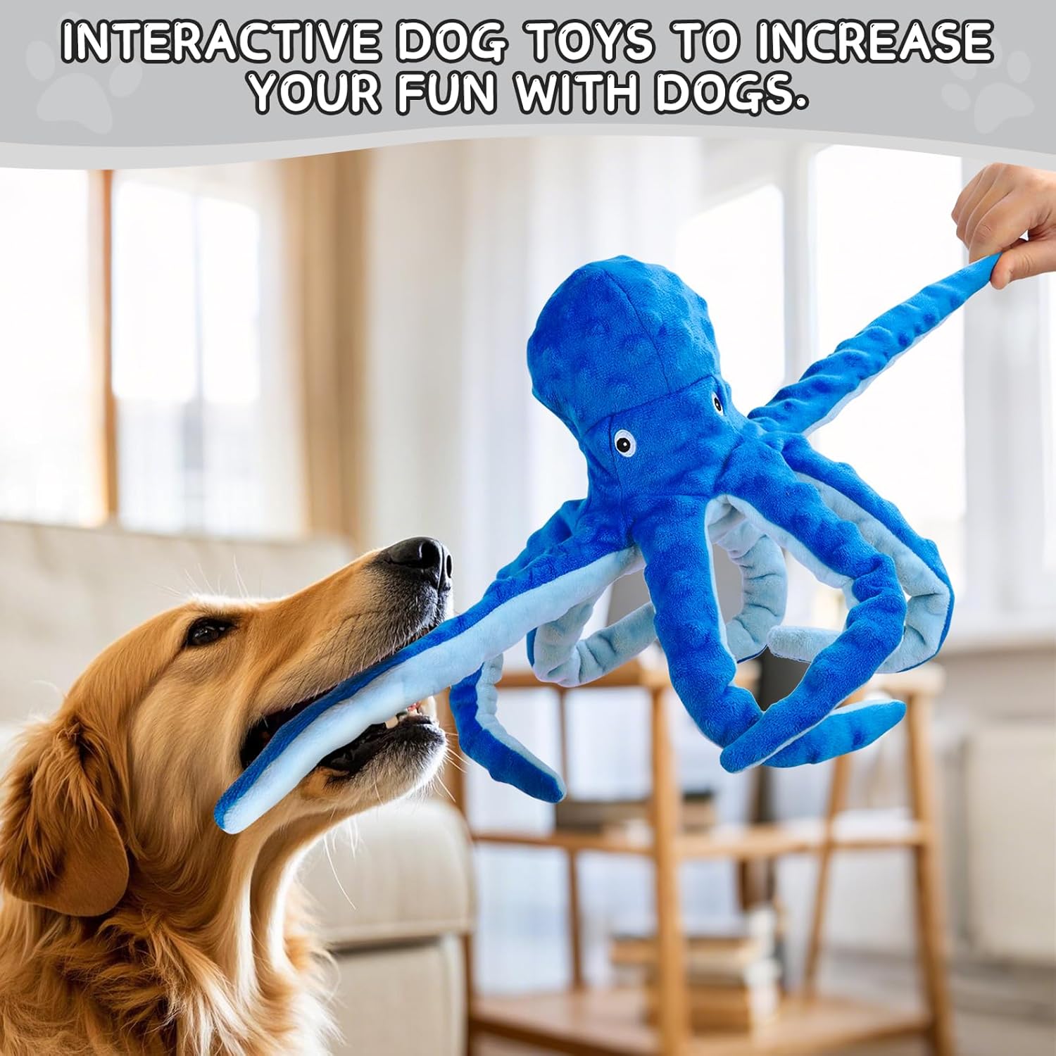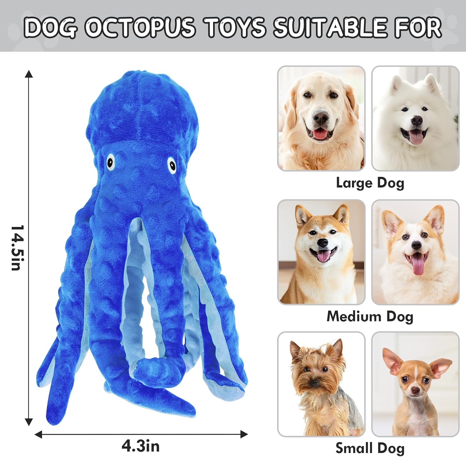 Octopus Squesky Dog Toys for Large Medium Small Dogs, Stuffed and Tough Plush Dog Toys for Aggressive Chewers(Blue)