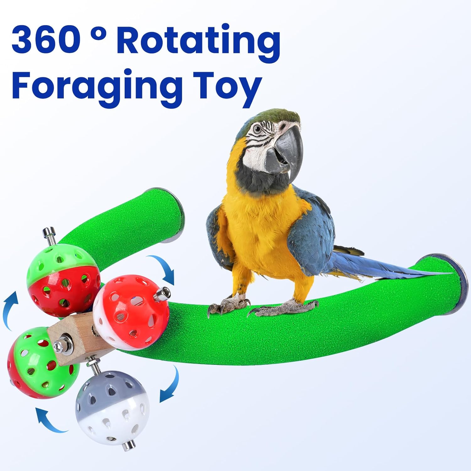 U Shape Parrot Perch Stand Toy Bird Platform Sand Paw Grinding Clean Stick Exercise Conure Budgie Cockatiel Cage Accessories (Green-Rotate)