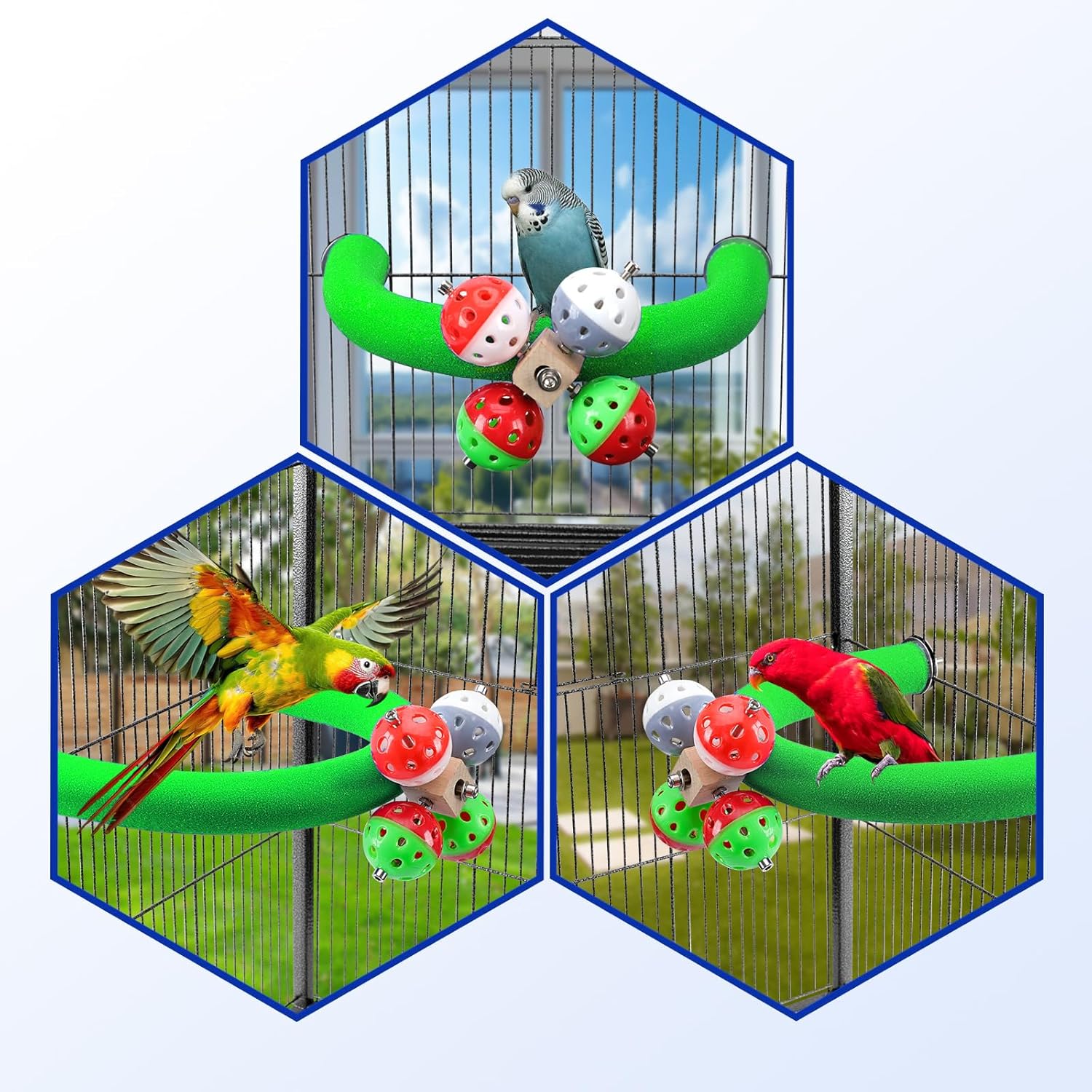 - 【Material】: The bird perch rough-surface is made of natural quartz sands and high quality PVC inside with food grade color, non-toxic materials.