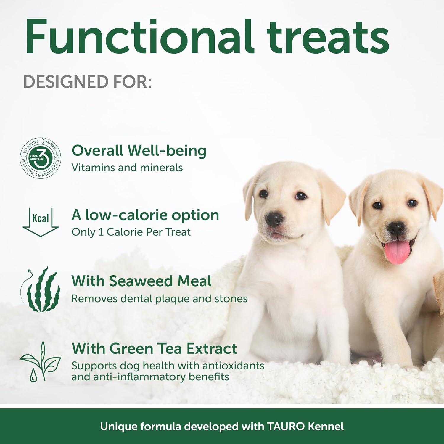 - Prevents Plaque & Bad Breath: Enriched with seaweed to reduce plaque and tartar, our puppy treats for training promote long-term dog dental care and keep your pup’s breath fresh and clean