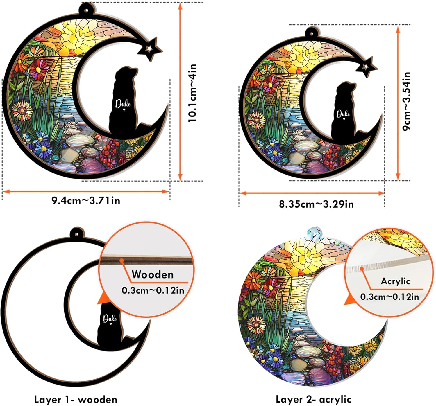 - VERSATILE DECOR & HEARTFELT TRIBUTE: This personalized pet memorial suncatcher is a beautifully crafted keepsake to honor the memory of your beloved dog or cat. With space to customize names and breeds for up to 3 pets, this unique piece serves as a touching reminder of the joy they brought. Perfect for a sunny window, it casts a warm glow reflecting the love shared. Thoughtfully designed as a sympathy gift, this suncatcher brings comfort and a heartfelt tribute to cherished companions.