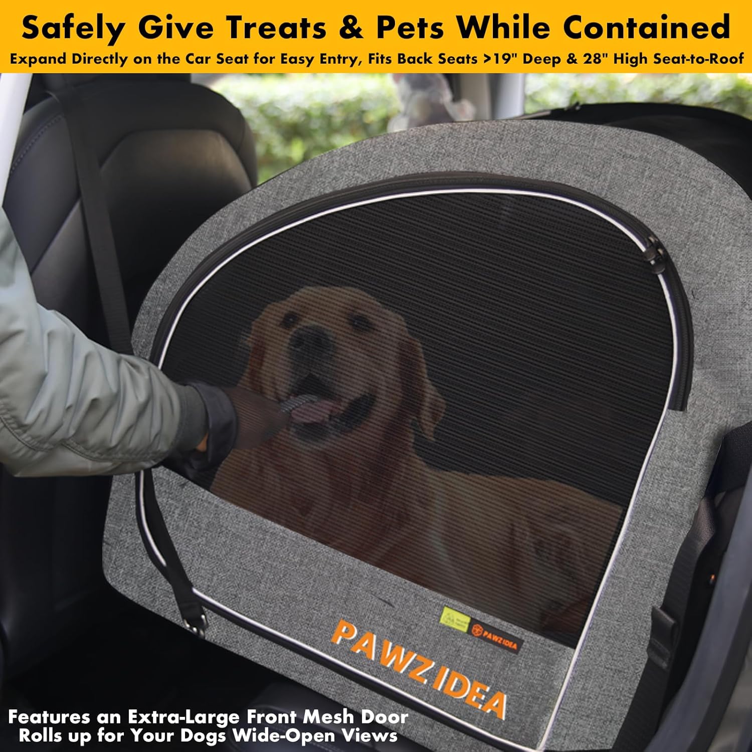 - EASY 4-STEP USE: 1️⃣ Place the machine-washable fabric cover on frame, aligning all 6 side holes. 2️⃣ Fold and expand directly on the car seat for easy entry (fits back seats >19" deep & 28" high seat-to-roof, or front passenger seats). 3️⃣ Secure with seatbelt and headrest straps for safe travel. 4️⃣ Slide the crate into stroller base slots and lock the 2 handle latches to complete setup.