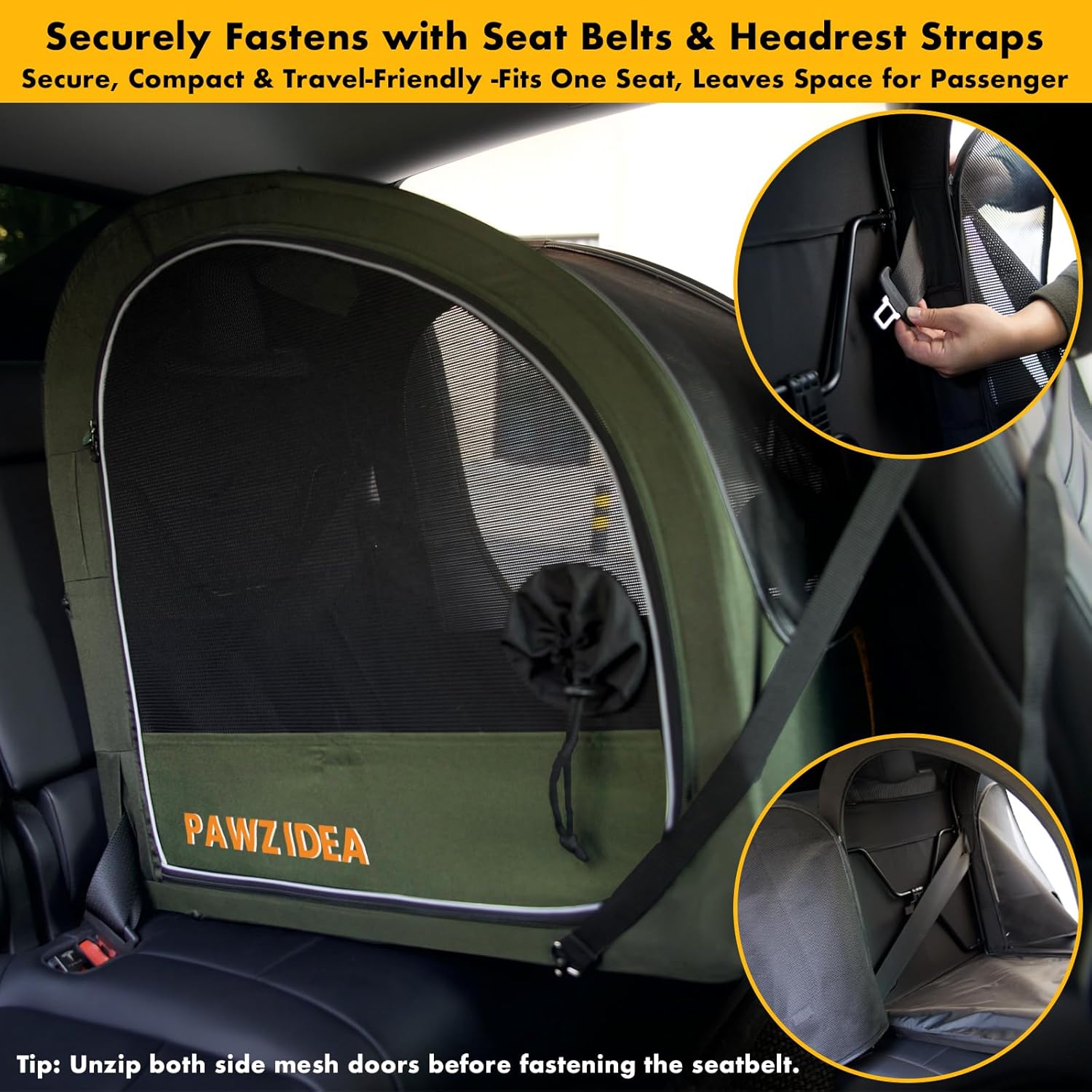 - EASY 4-STEP USE: 1️⃣ Place the machine-washable fabric cover on frame, aligning all 6 side holes. 2️⃣ Fold and expand directly on the car seat for easy entry (fits back seats >19" deep & 28" high seat-to-roof, or front passenger seats). 3️⃣ Secure with seatbelt and headrest straps for safe travel. 4️⃣ Slide the crate into stroller base slots and lock the 2 handle latches to complete setup.