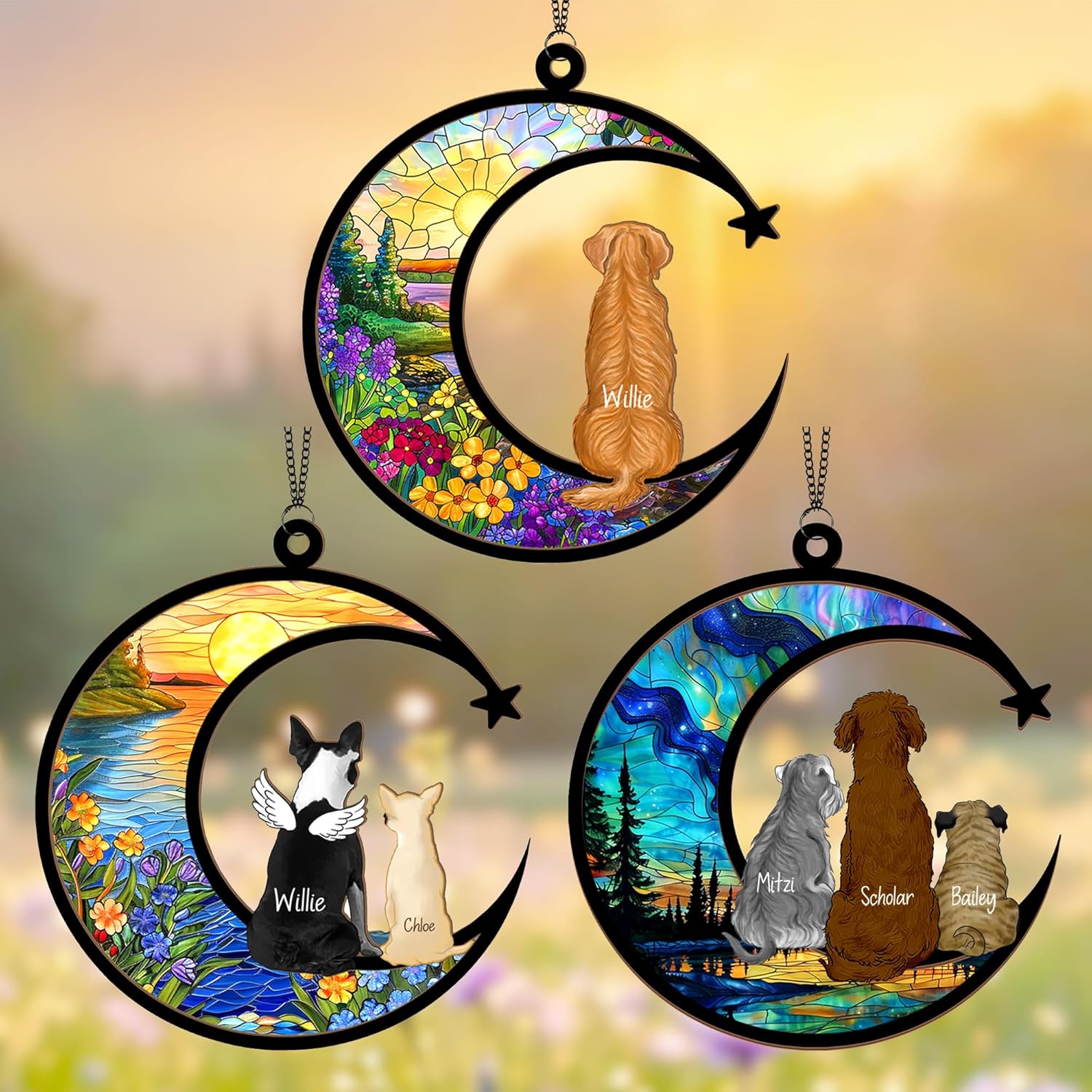 Personalized Dog Memorial Suncatcher – Custom Suncatcher with Name & Breed for Up to 3 Pets, Pet Loss Sympathy Gift, Memorial Keepsake for Dog Lovers
