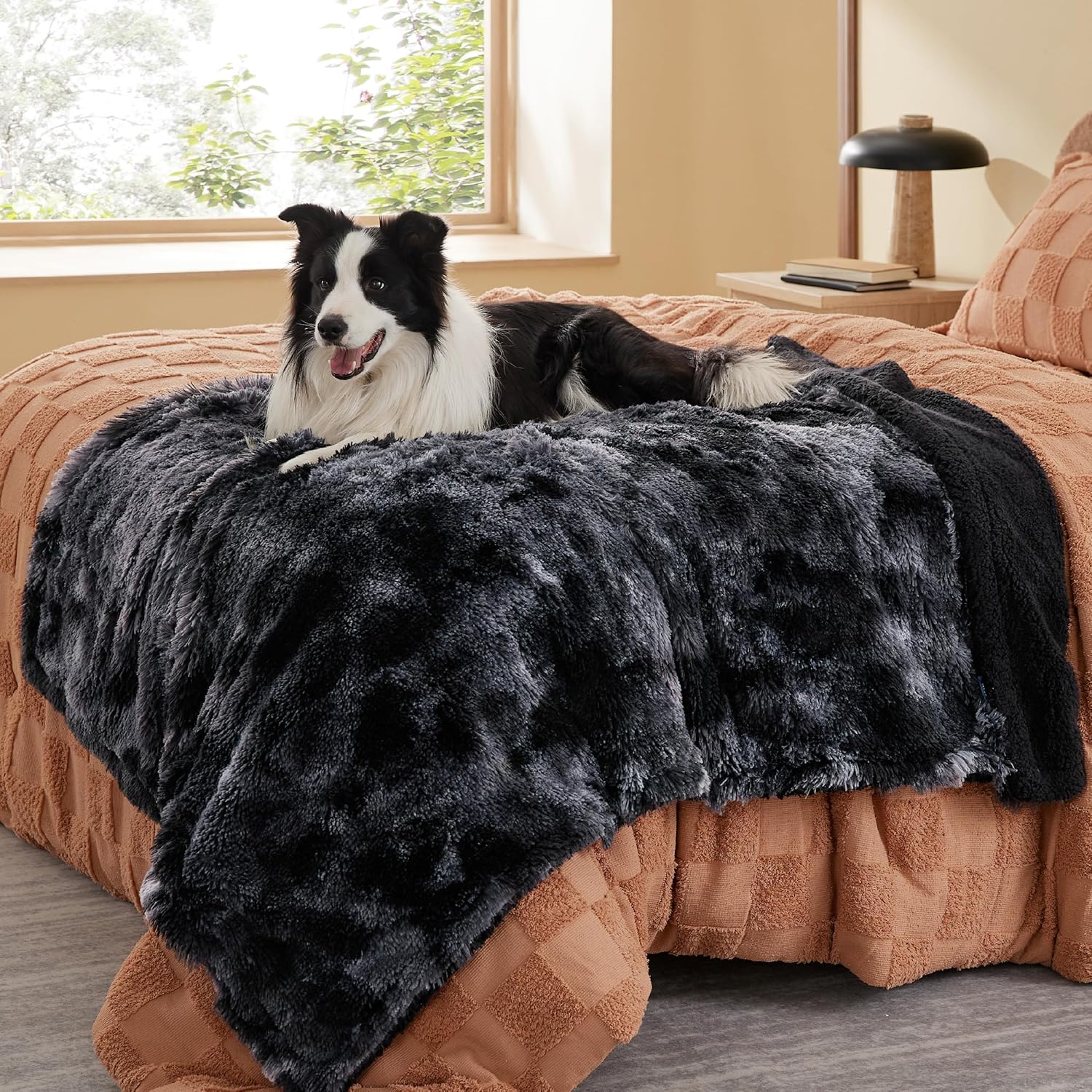 Bedsure Waterproof Dog Blankets for Large Dogs - Calming Cat Blanket for Couch Protector Washable, Long Faux Fur Pet Throw Blanket for Puppy, Reversible Furniture Protection, 50"x60", Tie-dye Black