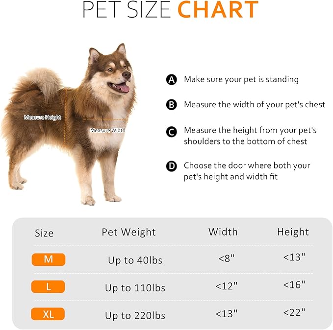 - 【ENERGY SAVING & SAFETY】The doggie door is made of new aviation aluminum alloy, sturdy and strong, can be used for many years. Equipped with 4 safety locks, 2 three-levels adjustable safety plates, more secure.