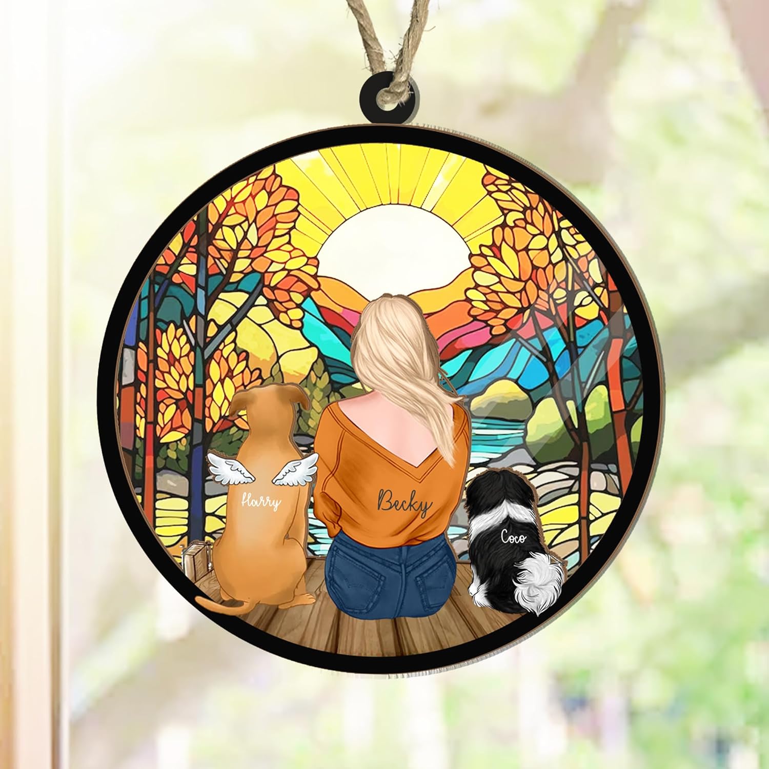 Personalized Pet Memorial Suncatcher – Custom Dog/Cat Memorial Keepsake, Pet Owner Portrait, Loss of Dog Sympathy Gift, Pet Remembrance Gift