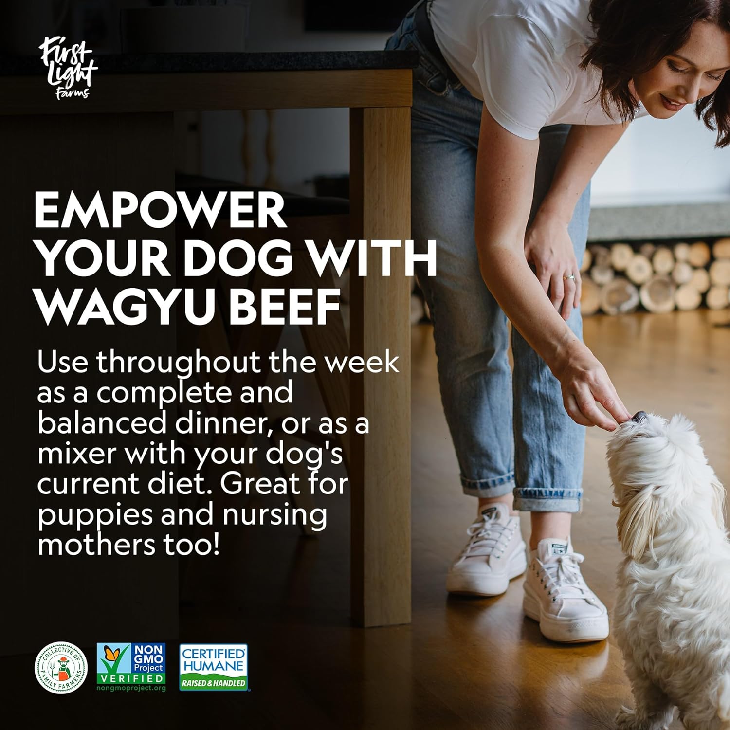 - Premium Wagyu Beef as the Star Ingredient: Treat your dog to the rich, delicious flavor of First Light Farms Wagyu beef dog food. Our high-quality formula features Wagyu beef as the primary ingredient, ensuring a protein-packed meal that supports strong muscles and overall health.