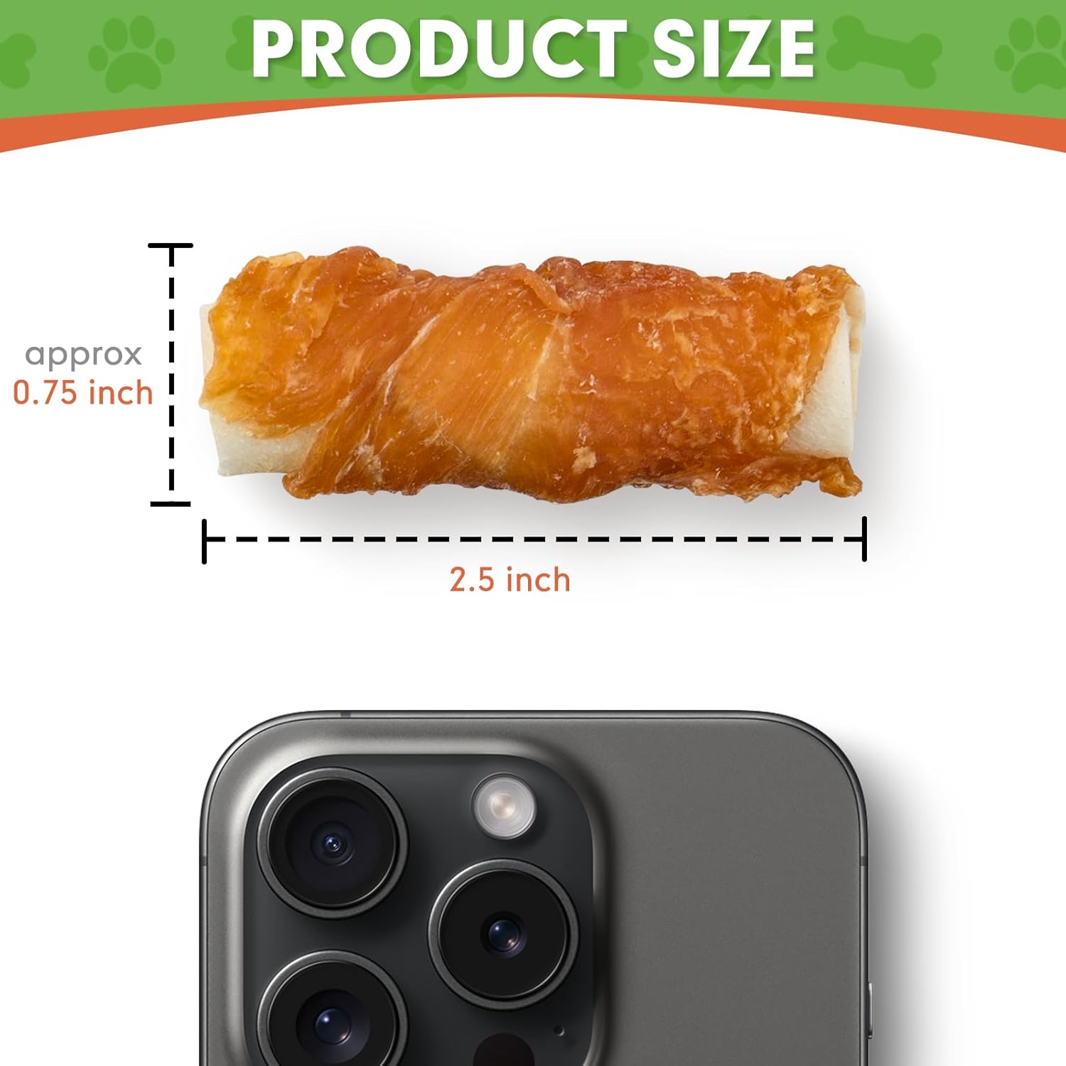 - [Product Information] Chicken wrapped rawhide roll is 2.5 inches in length. It is more suitable for small dogs. The 21.16 ounce per pack has 32 pieces.