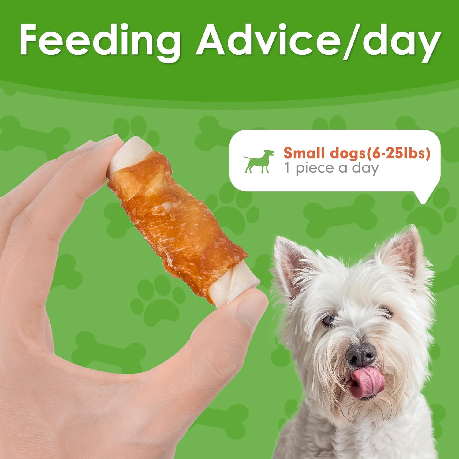 MON2SUN Dog Treats, 2.5 Inch Chicken Wrapped Rawhide Rolls, Teeth Cleaning Chews with High Protein for Small Dogs, 21.2 oz (32 Count - Pack of 1)