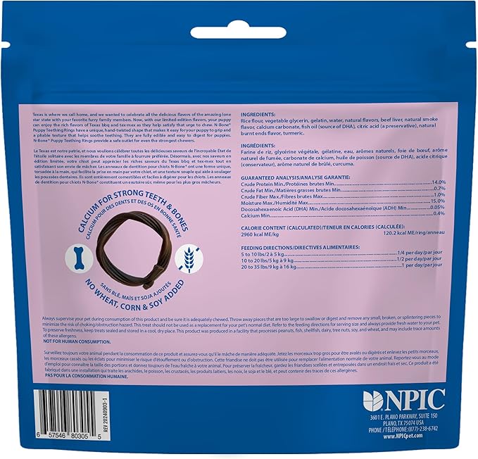 N-Bone Puppy Teething Rings Taste of Texas Burnt Ends Flavor 3 Count