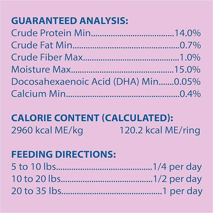 - Fortified with DHA and beneficial fatty acids to promote a healthy brain, ideal skin health, and a shiny coat.